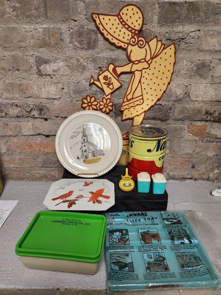 Oh that garden stake!! Nash's coffee tin and a bunch of Rock Lake stuffs...awesome vintage lot