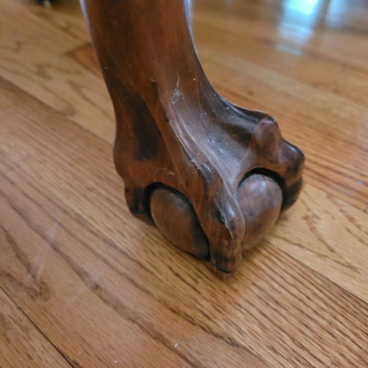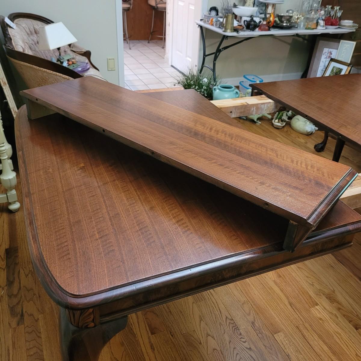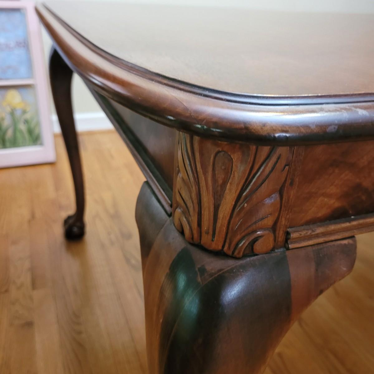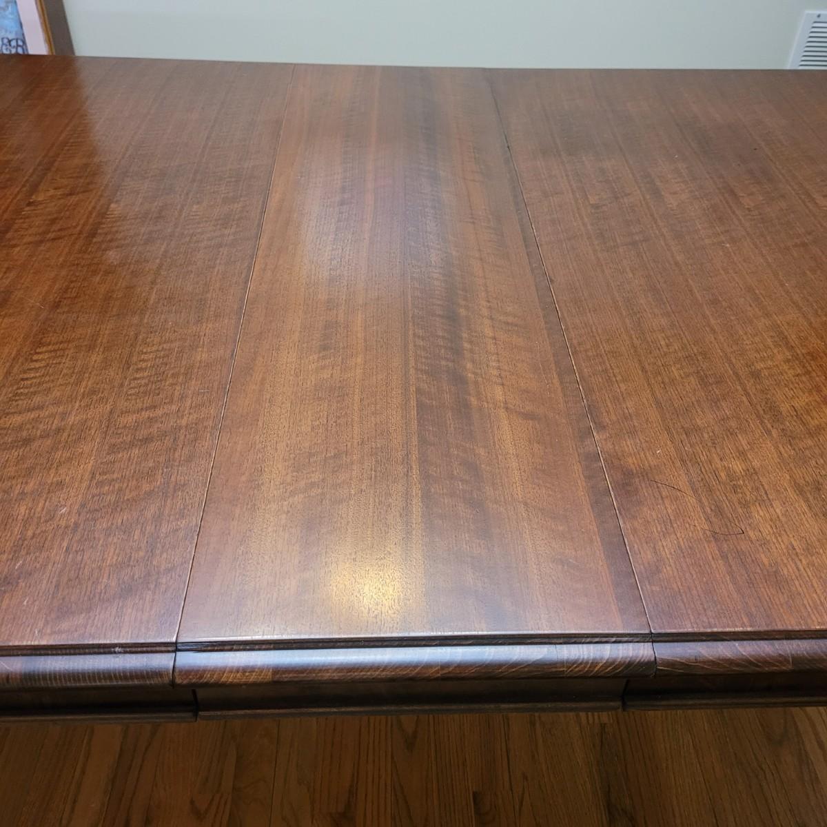 Beautiful claw foot dining table by Finch Fine Furniture comes with one middle leaf. Very few marks and scratches (see photos). Measures approximately 64" x 44" x 30"H. Leaf measures approximately 12" x 44". Local pickup only. Winning bidder must bring assistance to help move and load this item due to its weight and size.
