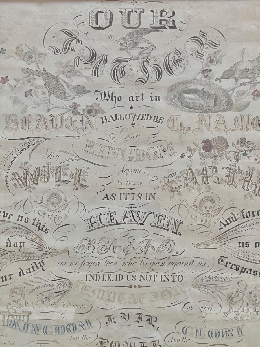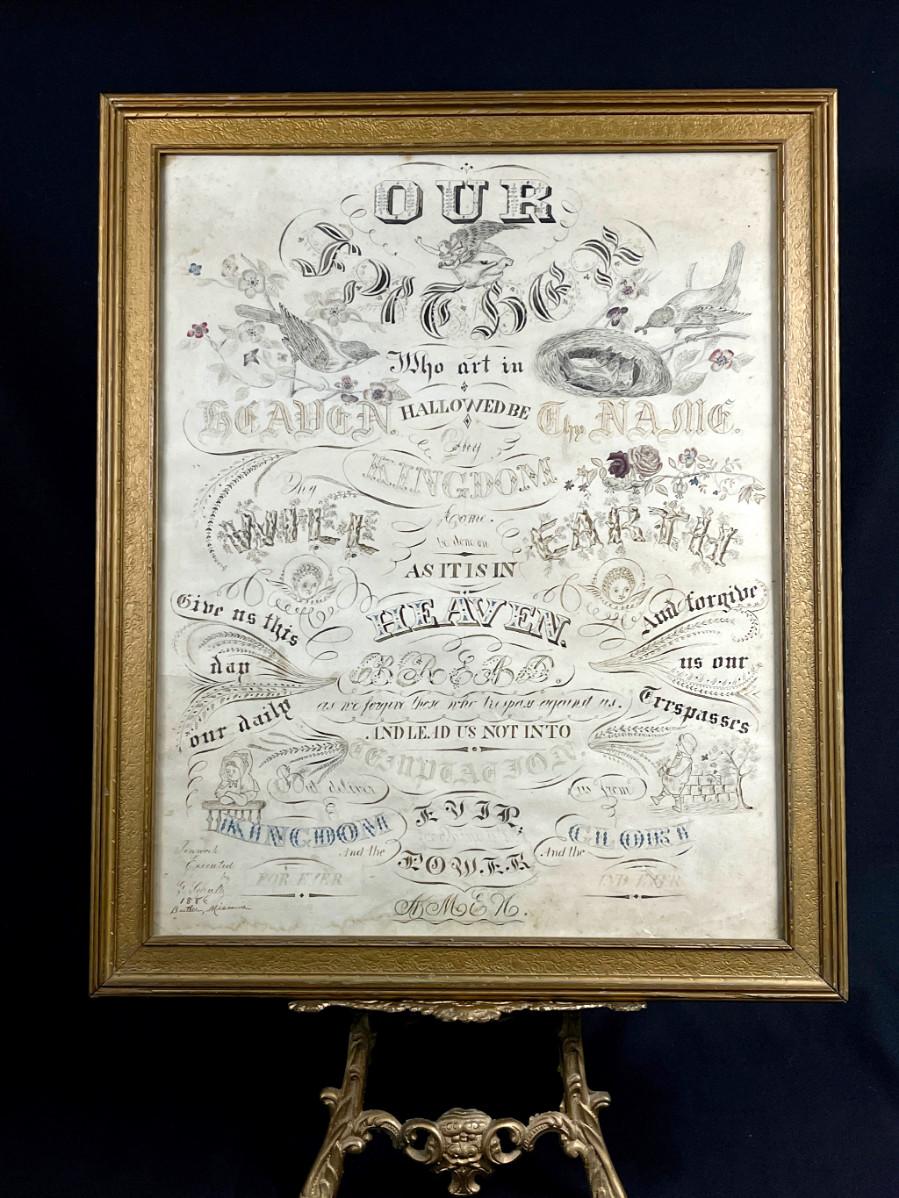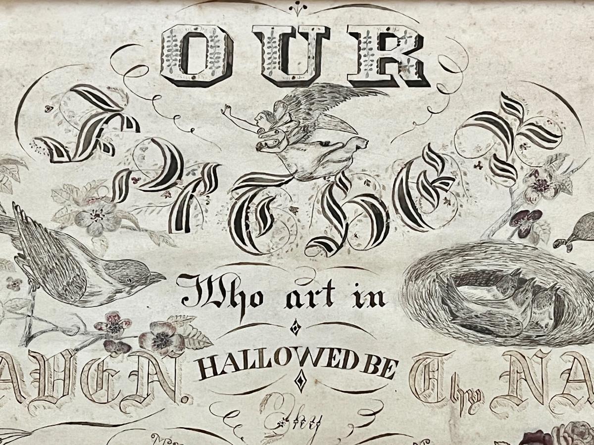 Fine 19th C Spencerian Lord's Prayer calligraphic drawing