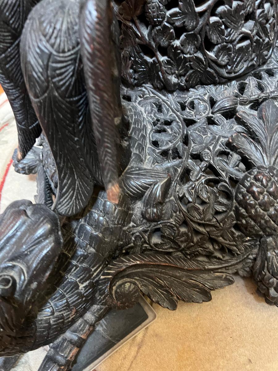 Fine 19th Century  Rosewood Intricately Carved Center Table Dragons Cranes~~