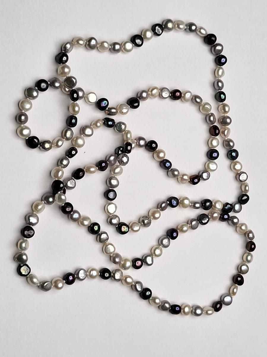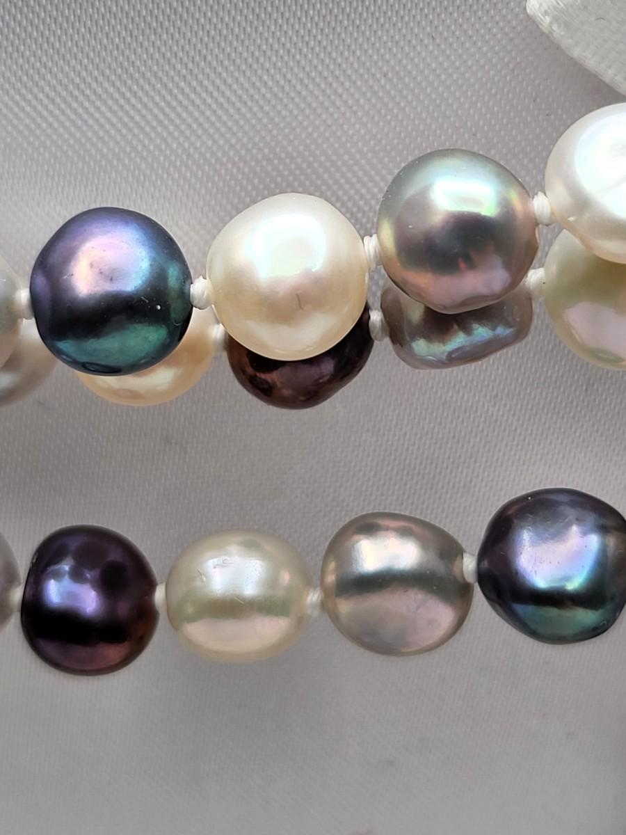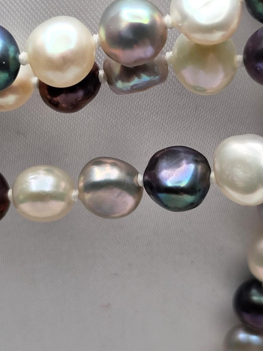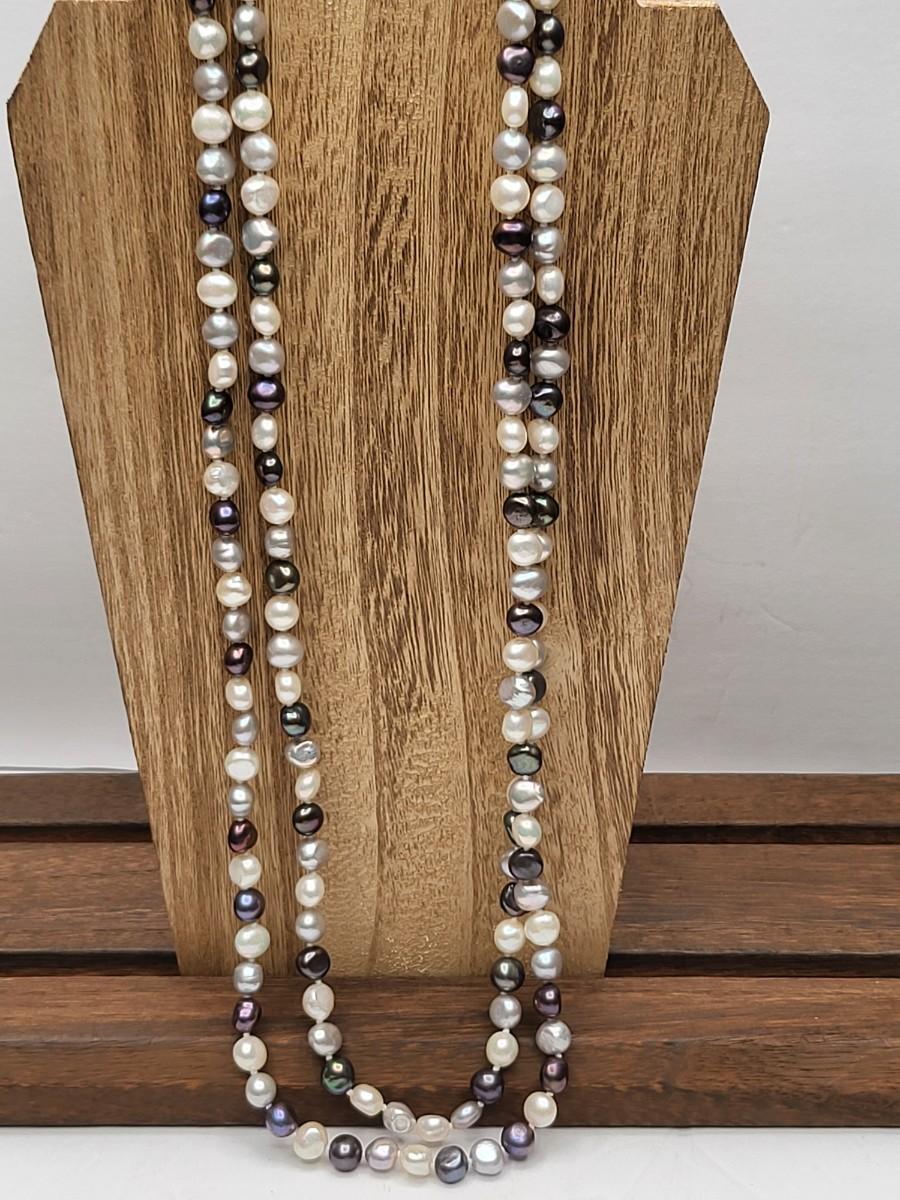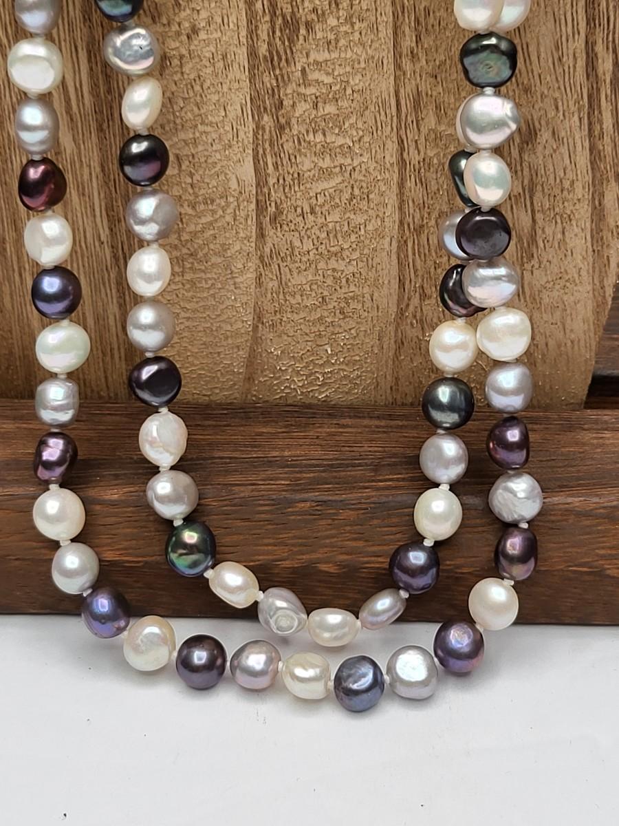 New, in Burton jewelers box. Gorgeous 53" continuous genuine freshwater pearls, multi-color strand necklace.