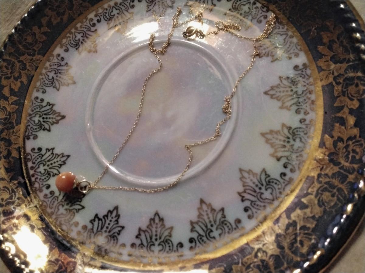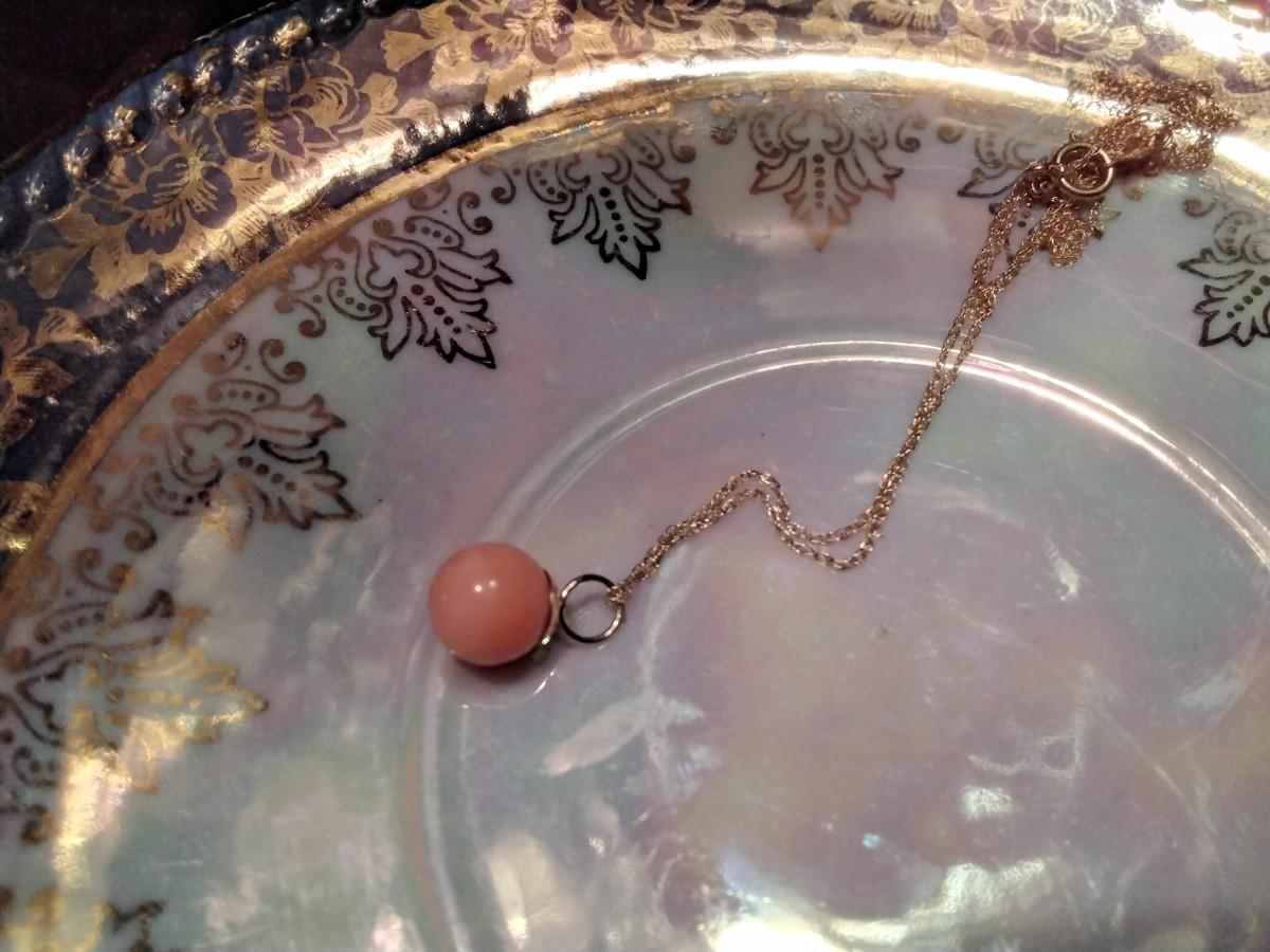 Fine 7 1/2 MM Pink Cloud Angel Skin Coral Drop extra Large 14kt hoop on 14k solid gold chain