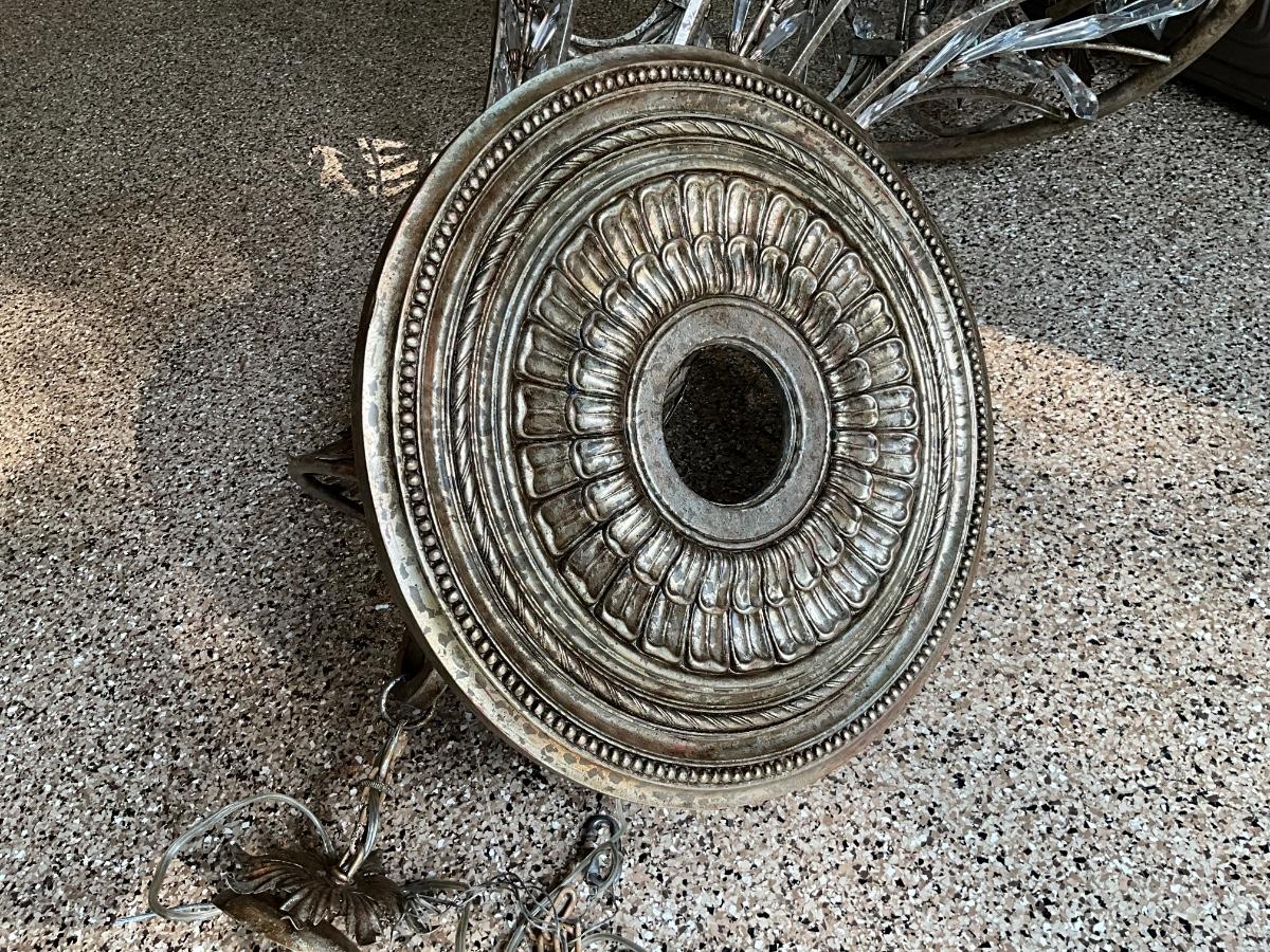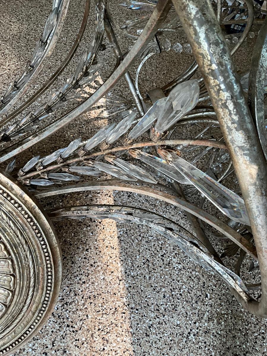 From the Winter Palace Collection- Steel and warm antiqued Silver finish. Features Brilliant icicles lead crystals.