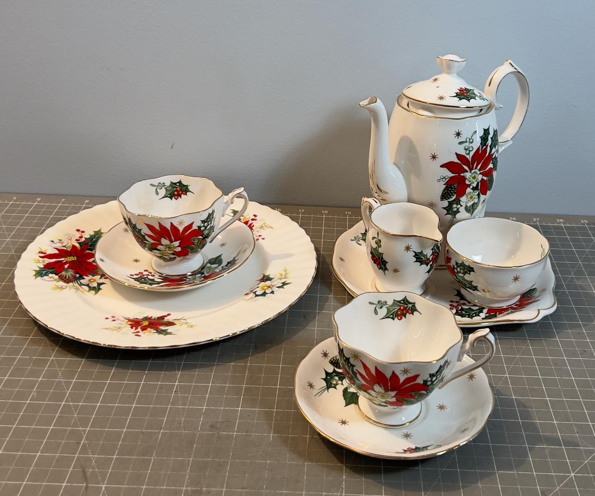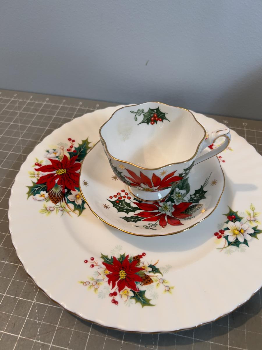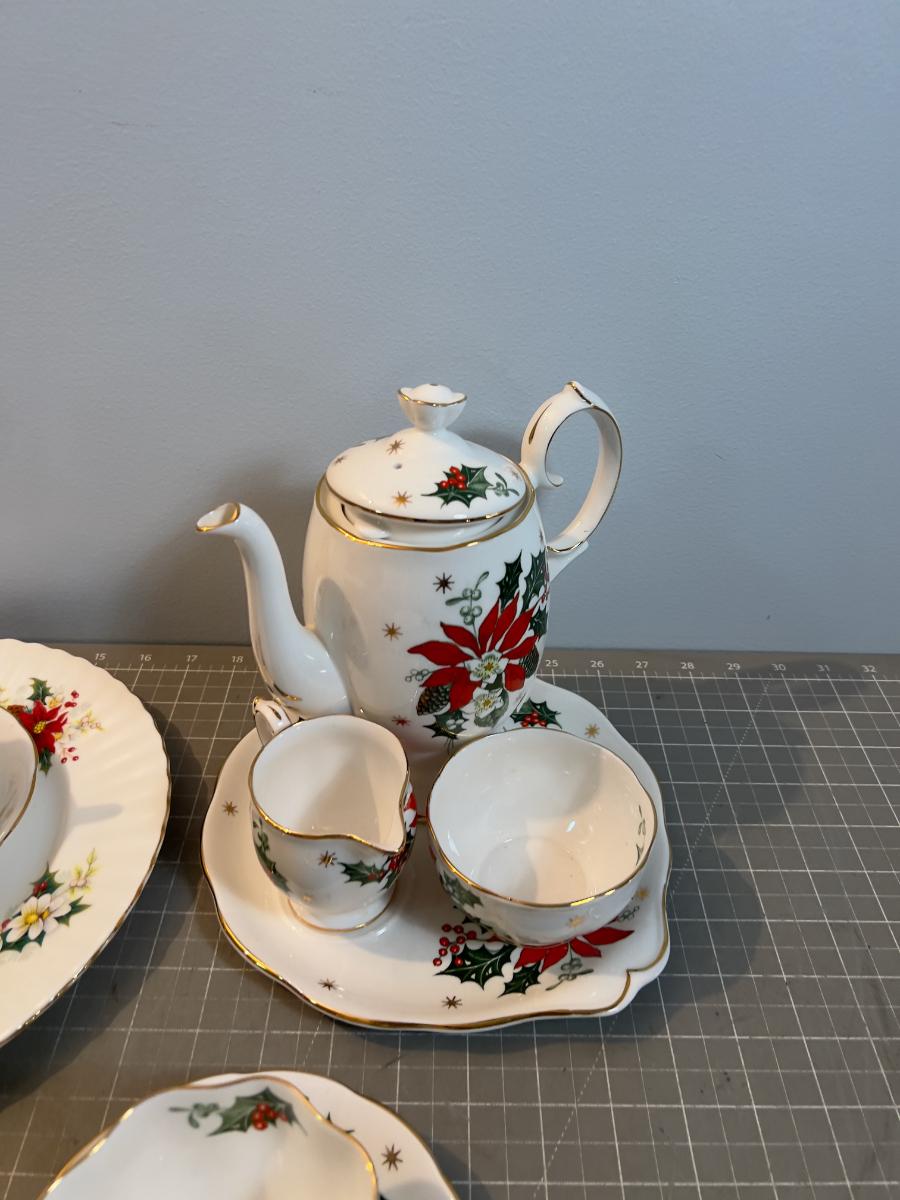 Serving Plate is A different Brand But Matches the Poinsettia THEME!! Nice. Lovely Christmas Tea for 2
