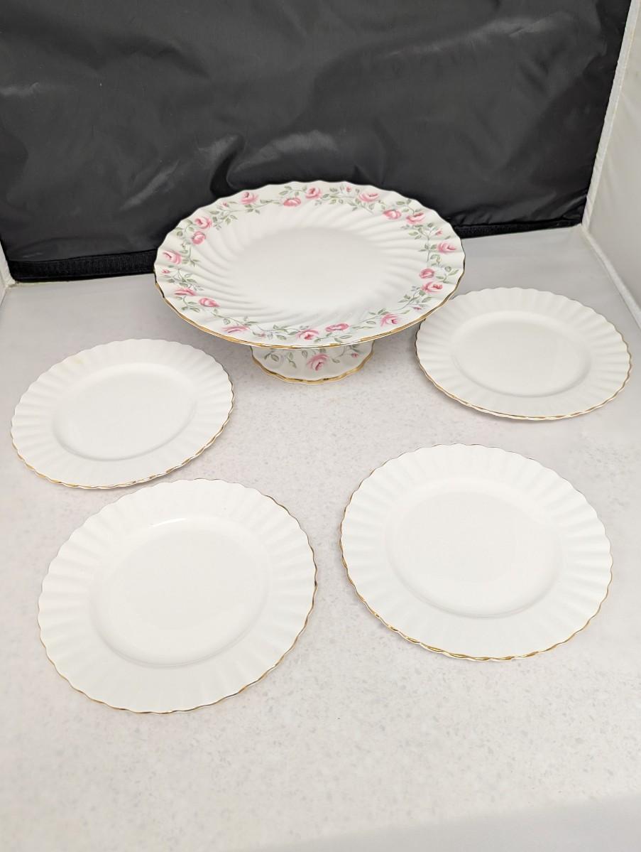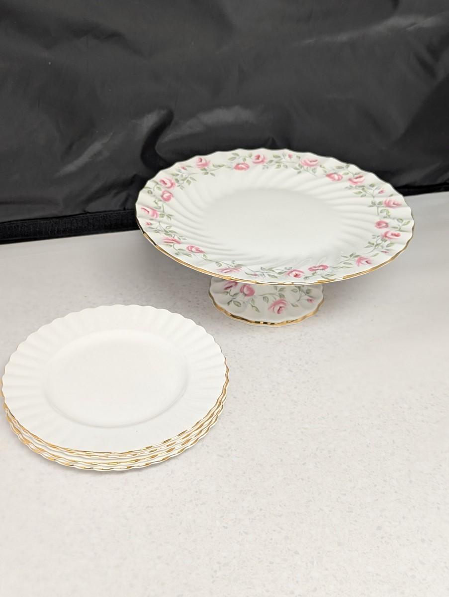 Fine Bone China Crown Staffordshire Cake Platter & Royal Albert Val D'or Plates #59