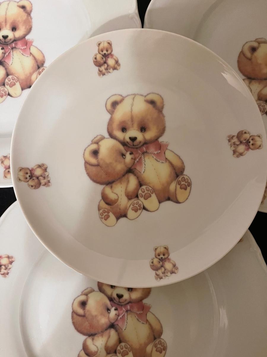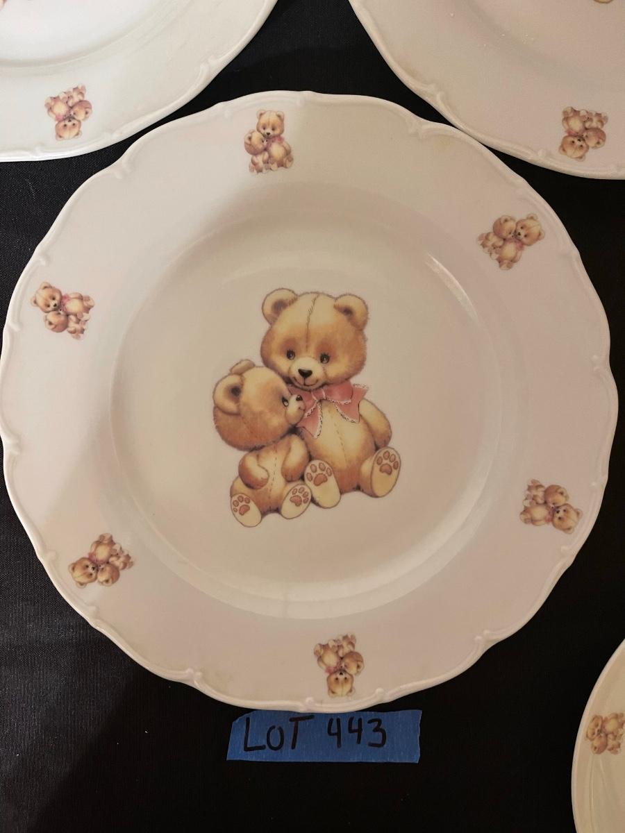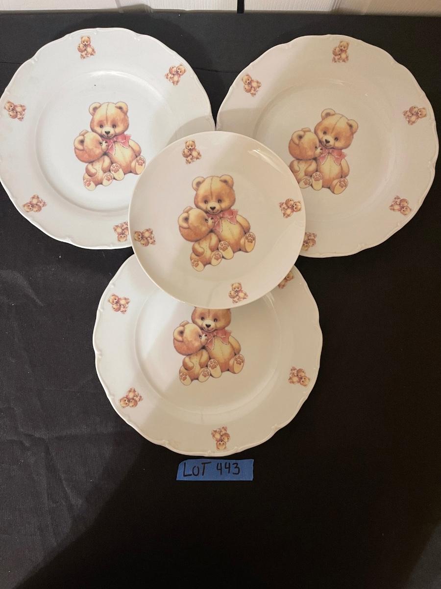 4 piece Morgana Collection Hand Decorated in the USA Fine China, Teddy Plates made in Czech Republic, Haas & Cajzek.