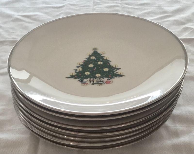 Fine China Christmas Tree plates with silver rims YD#022-0050
