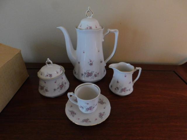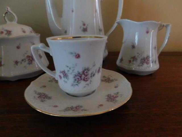 Fine China Tea Set with Pitcher, Cream and Sugar and 6 Cups and Saucers