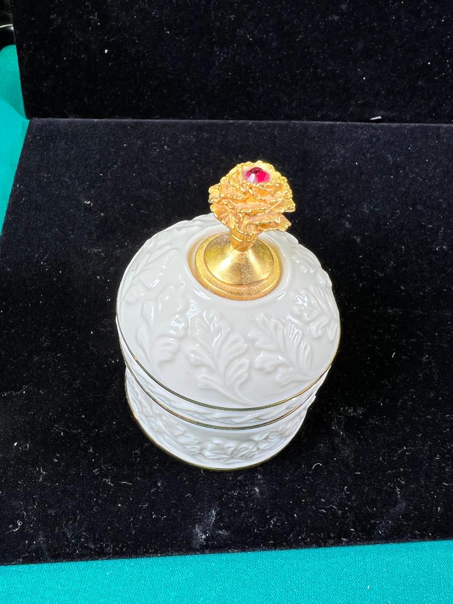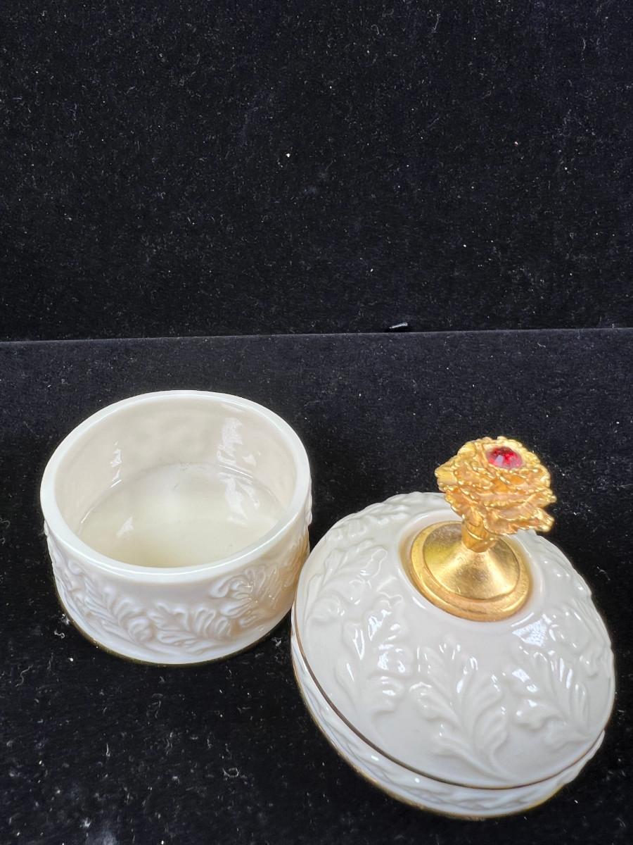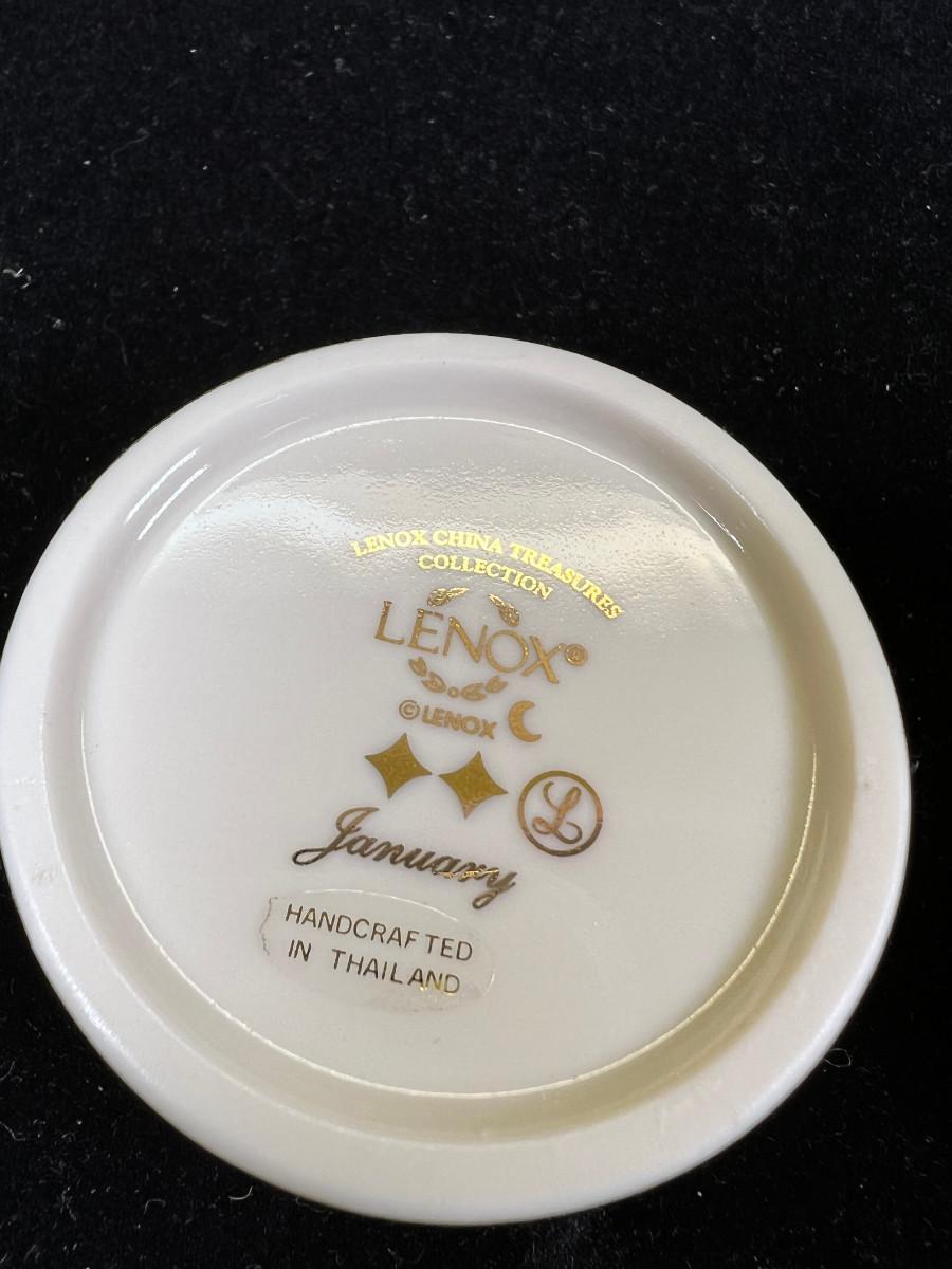 January Lenox trinket box. The bell is a "first edition" and has a tiny chip and hairline crack
