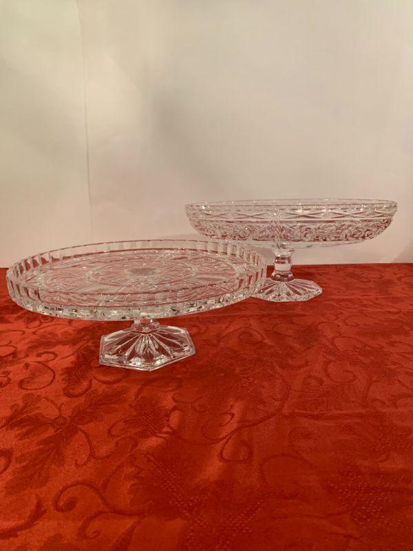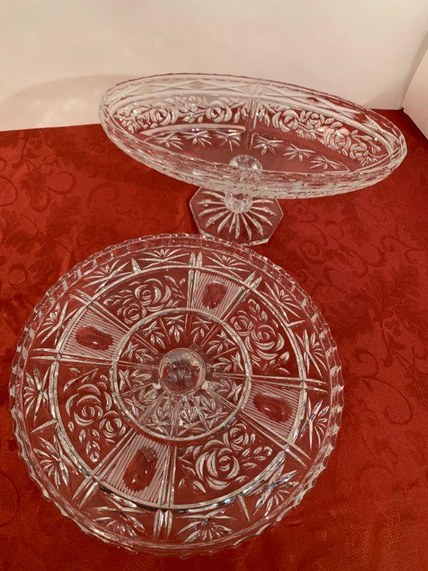 etched - Fine crystal cake stand and pedestal dessert bowl