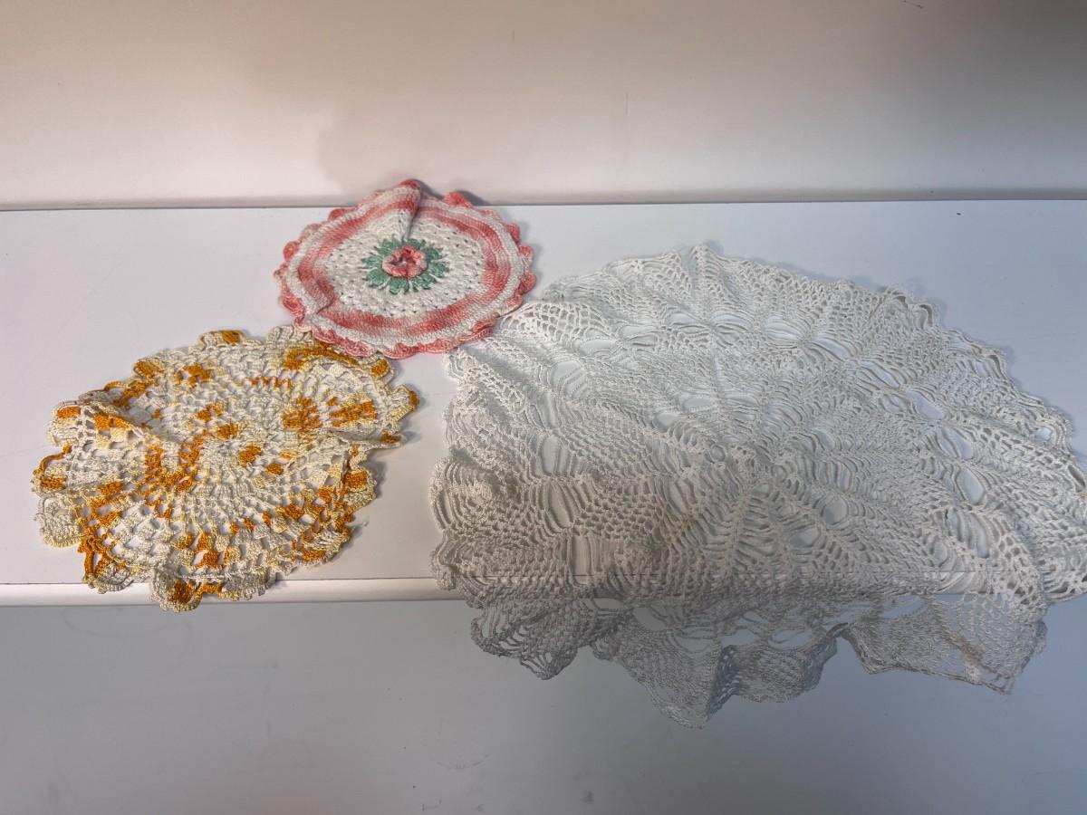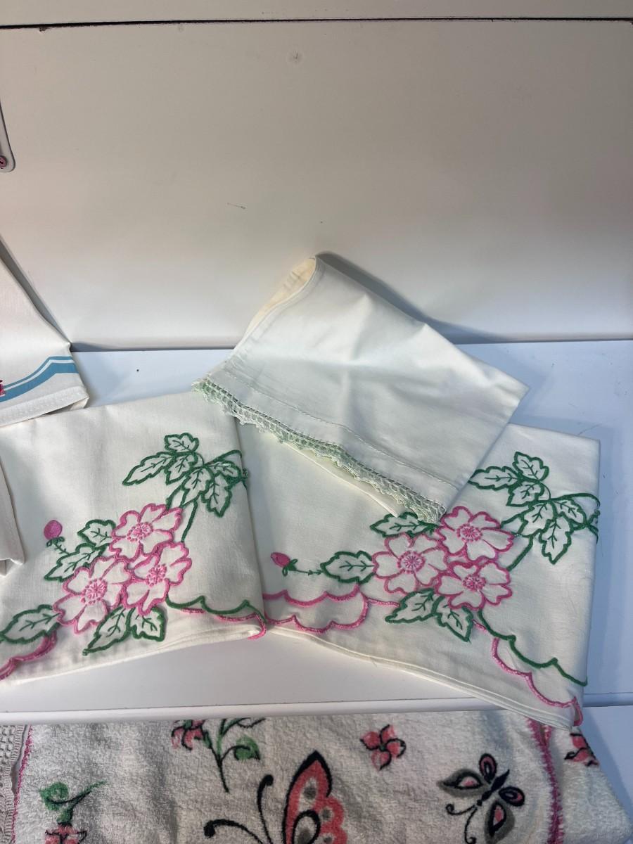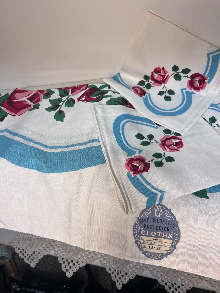 FINE LINEN TABLECLOTH AND NAPKINS, TEA TOWELS, DOILIES AND MORE