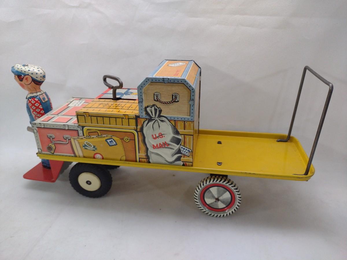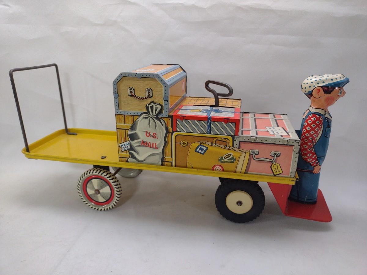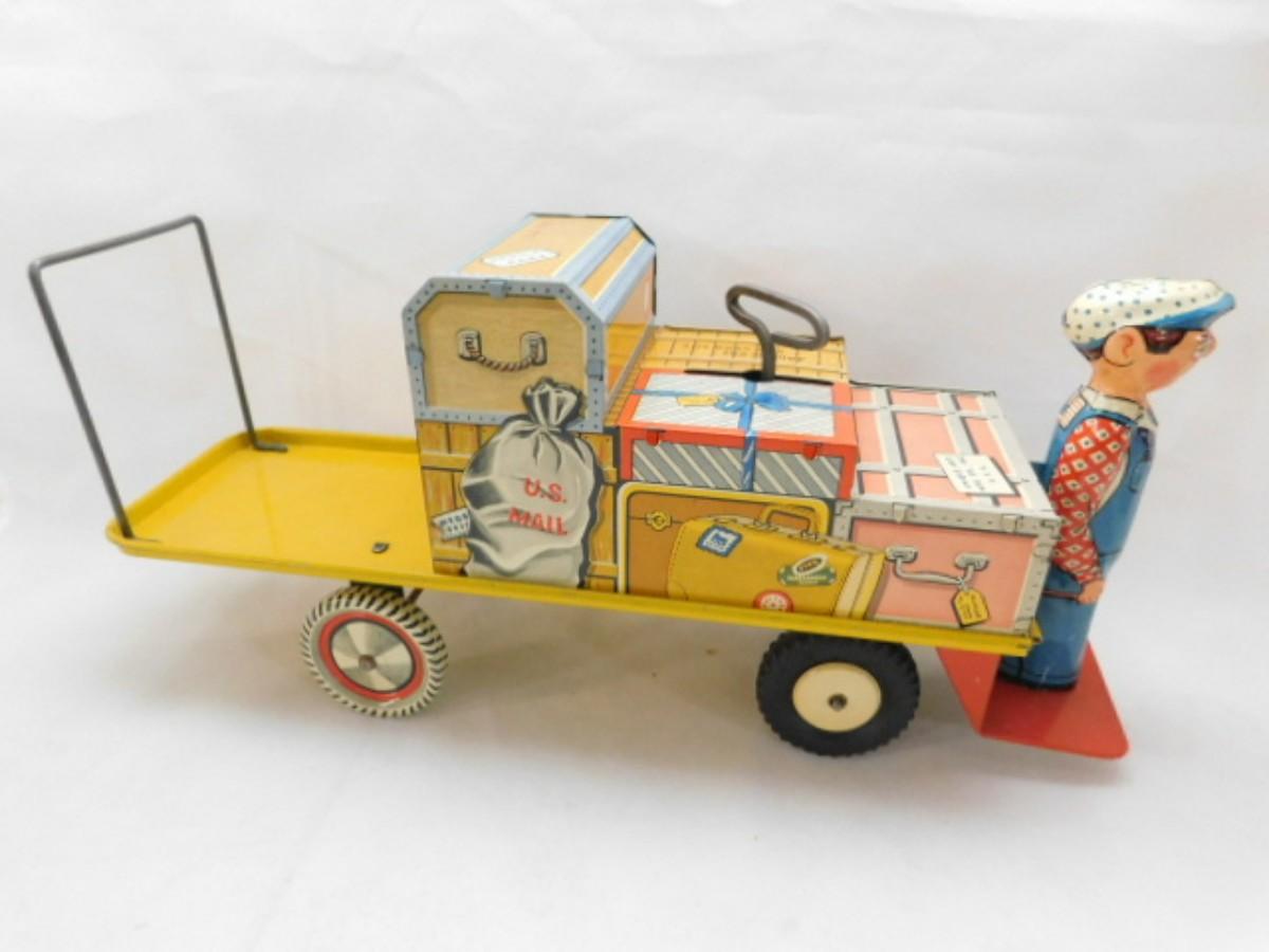 Vintage Unique Art Brand Finnegan Porter Luggage Cart Mechanical Toy with Original Box