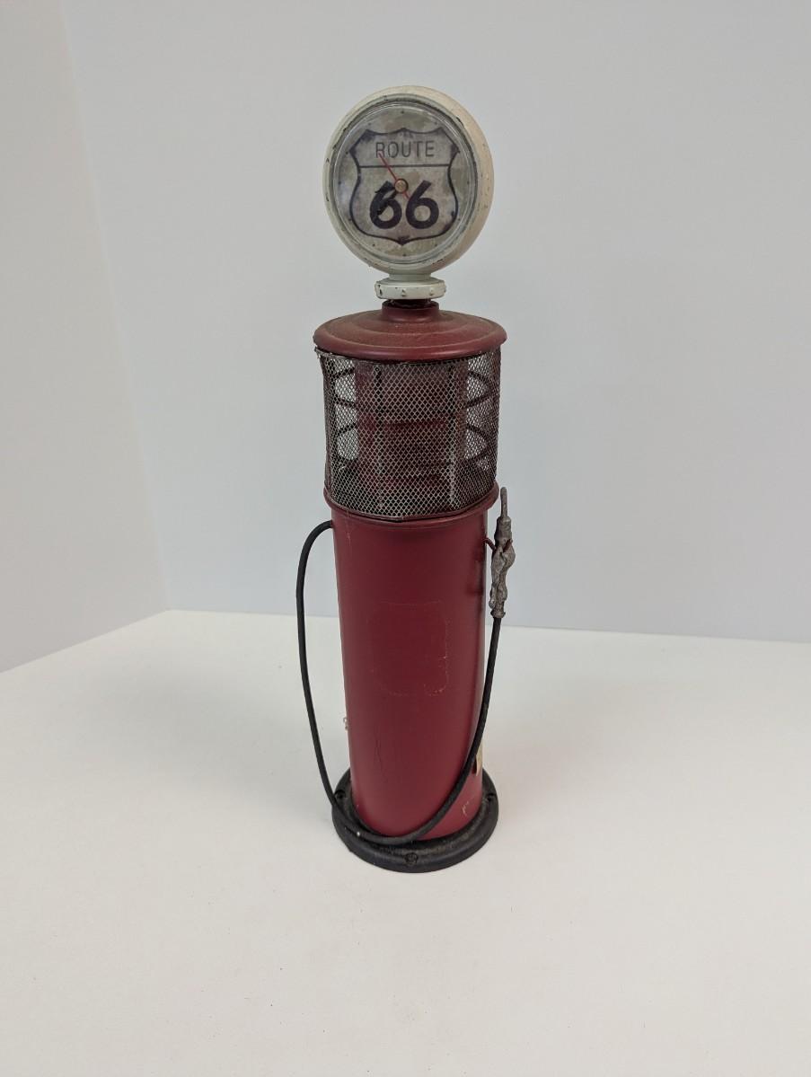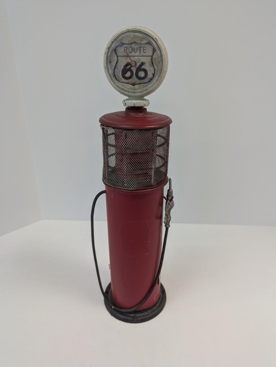 Fire Chief Route 66 Metal Gas Pump Vintage w/Clock Second Hand & Coin Bank Untested