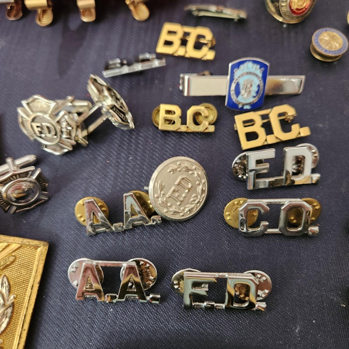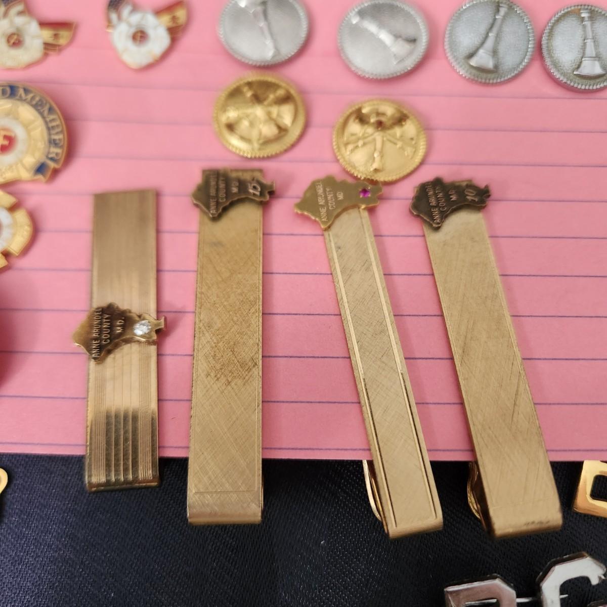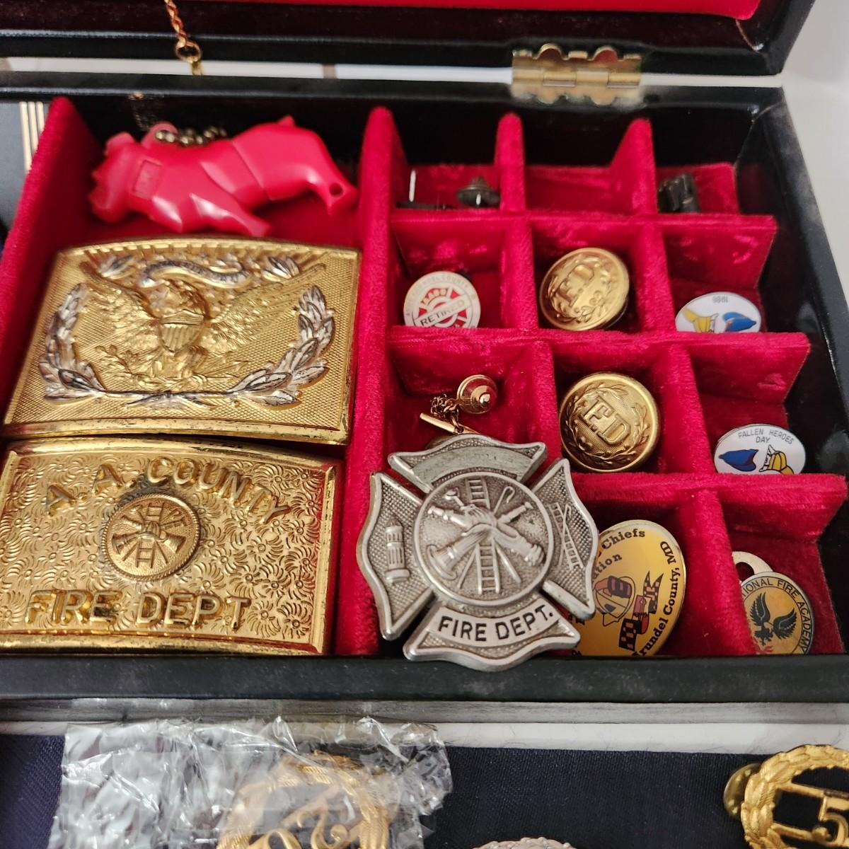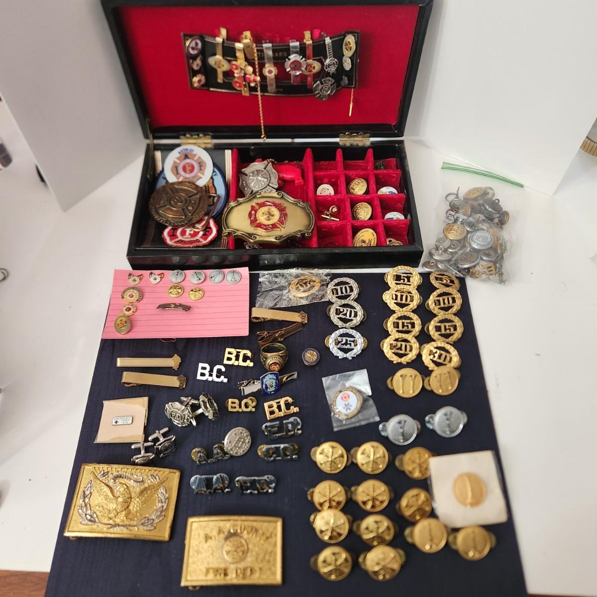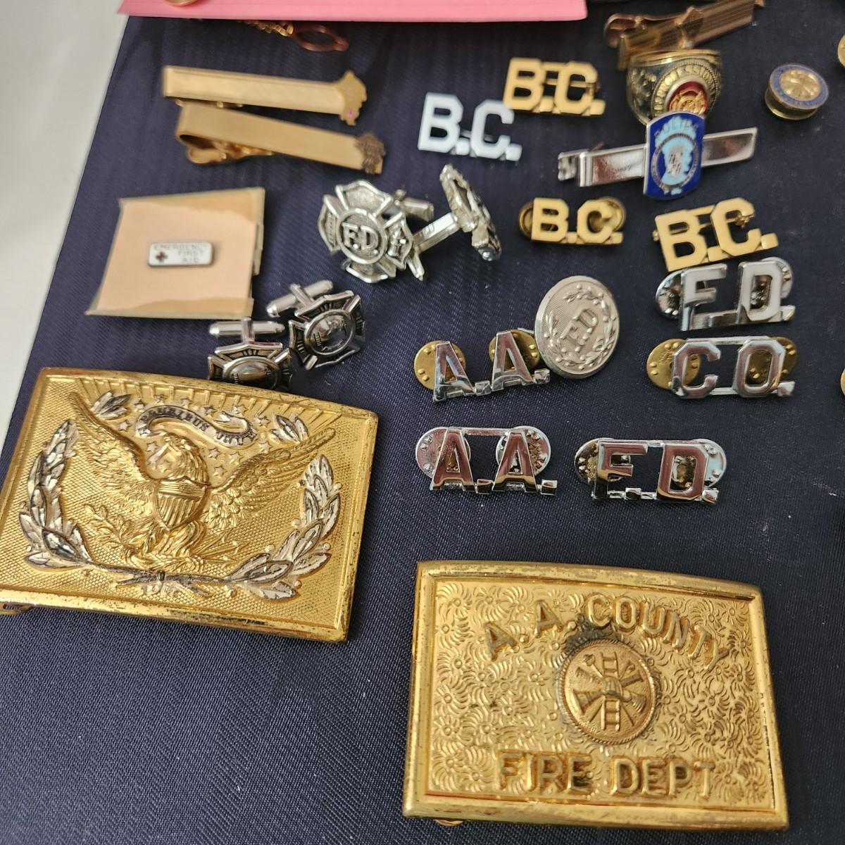 Fire Department Uniform Accessories Tie Clips, Belt Buckles, Buttons, Service Years Pins, Ring, Awards