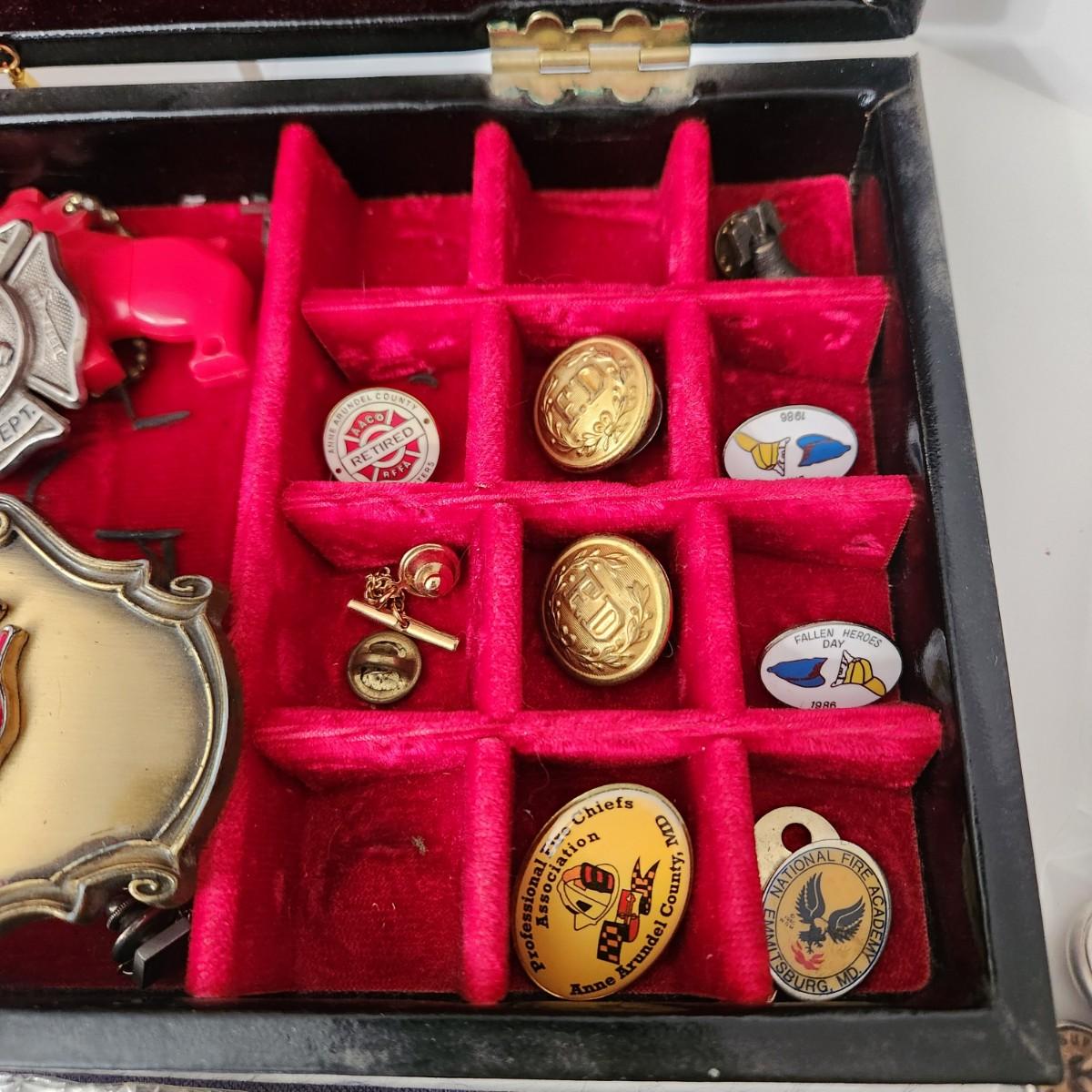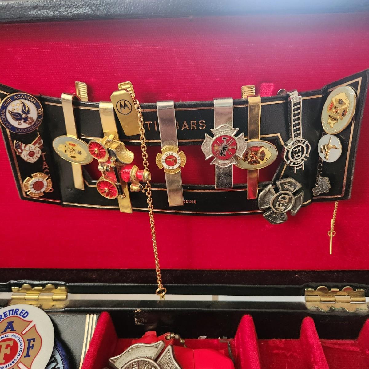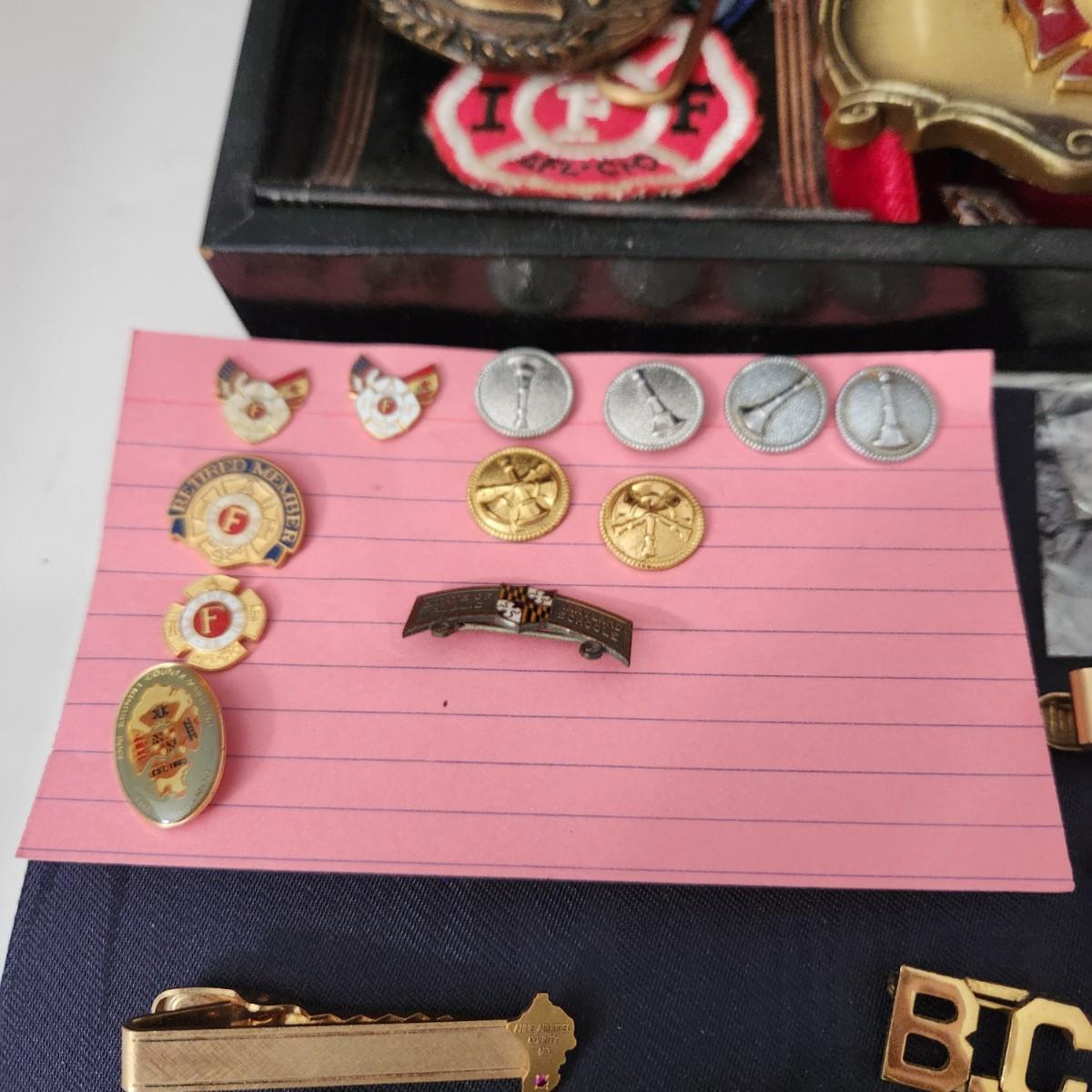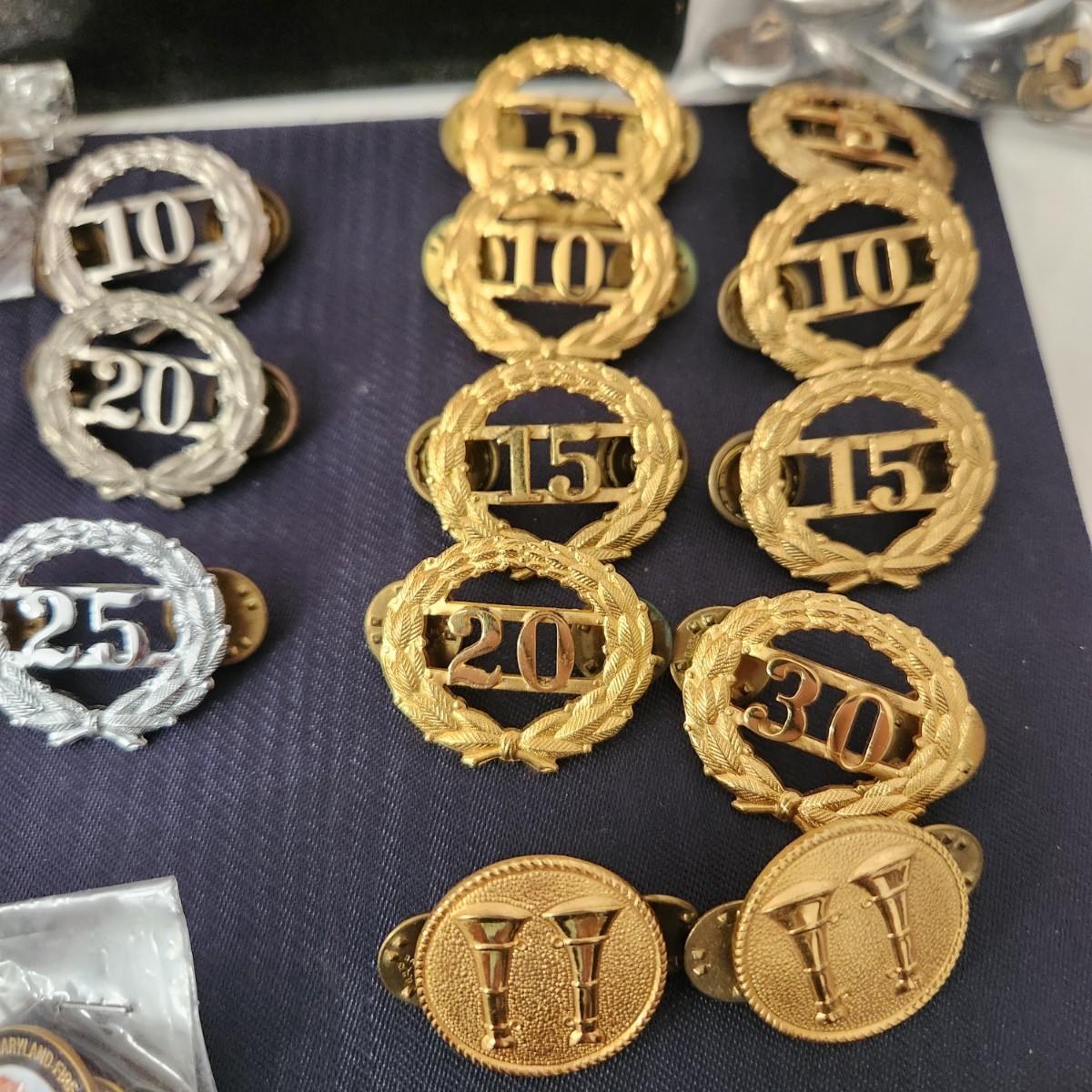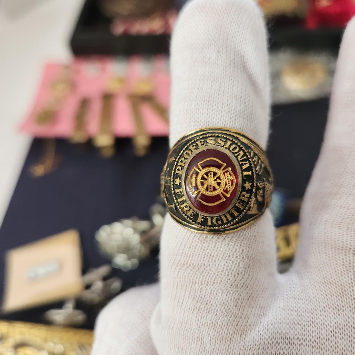 Fire Department Uniform Accessories Tie Clips, Belt Buckles, Buttons, Service Years Pins, Ring, Awards