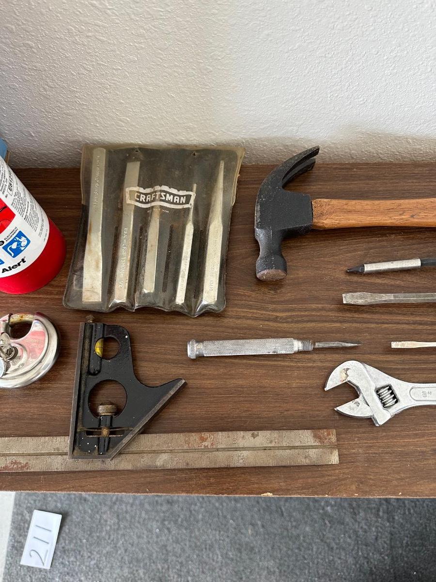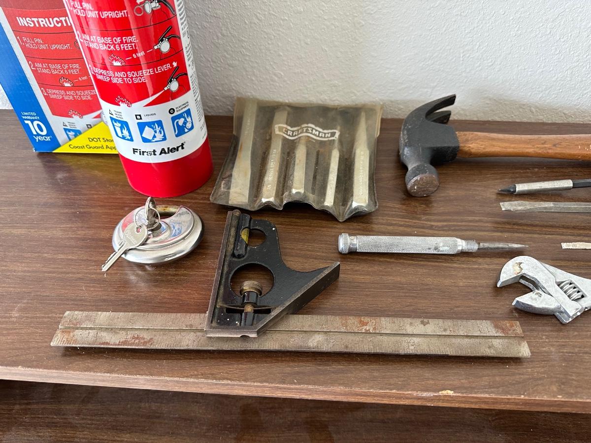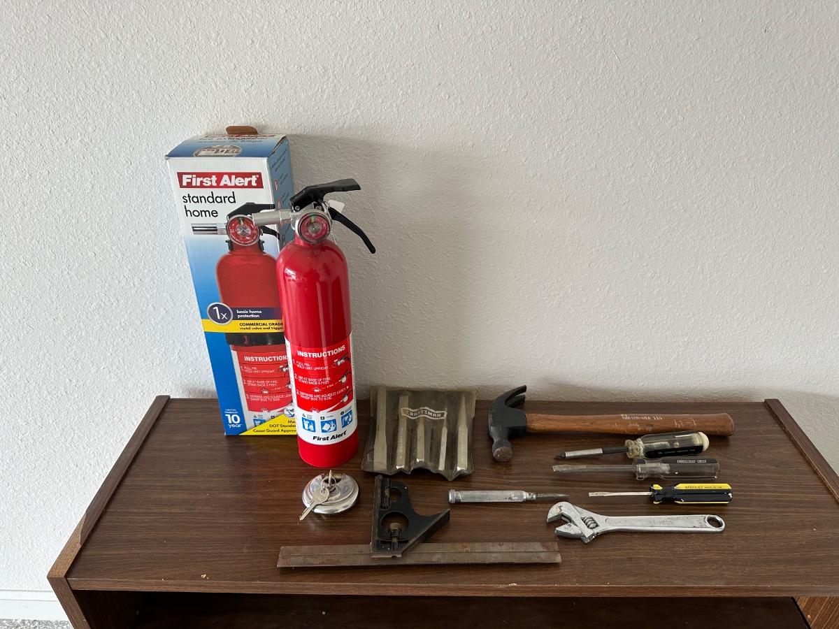 FIRE EXTINGUISHER, HAND TOOLS AND PAD LOCK