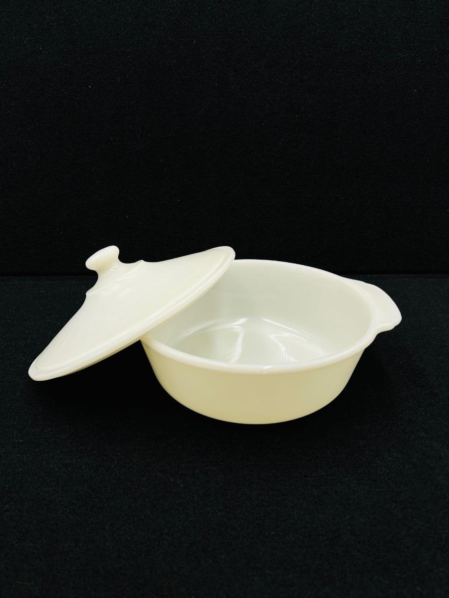 FIRE KING ~ Ivory Lidded Casserole Dish & Trivet