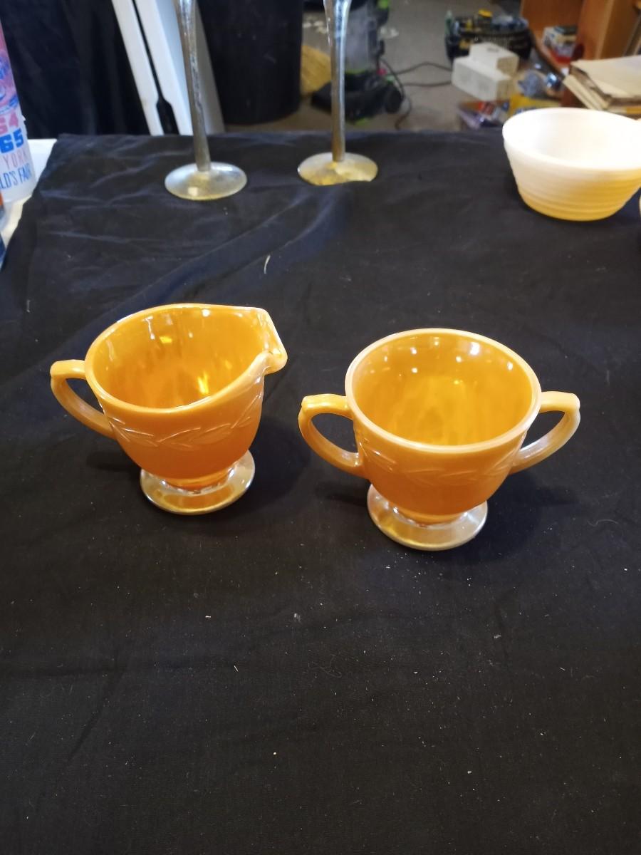FIRE KING CUPS & SAUCER CREAMER/SUGAR