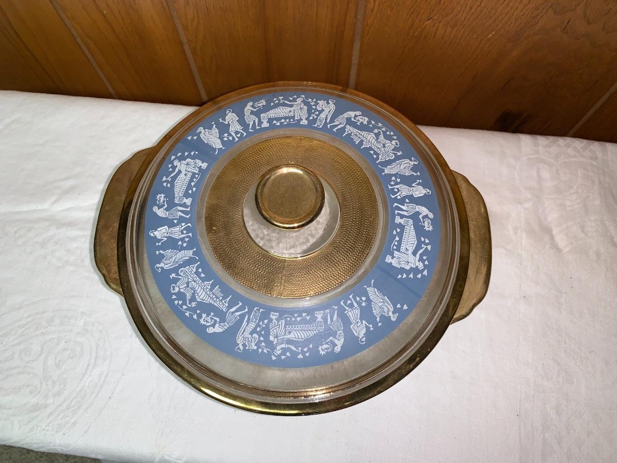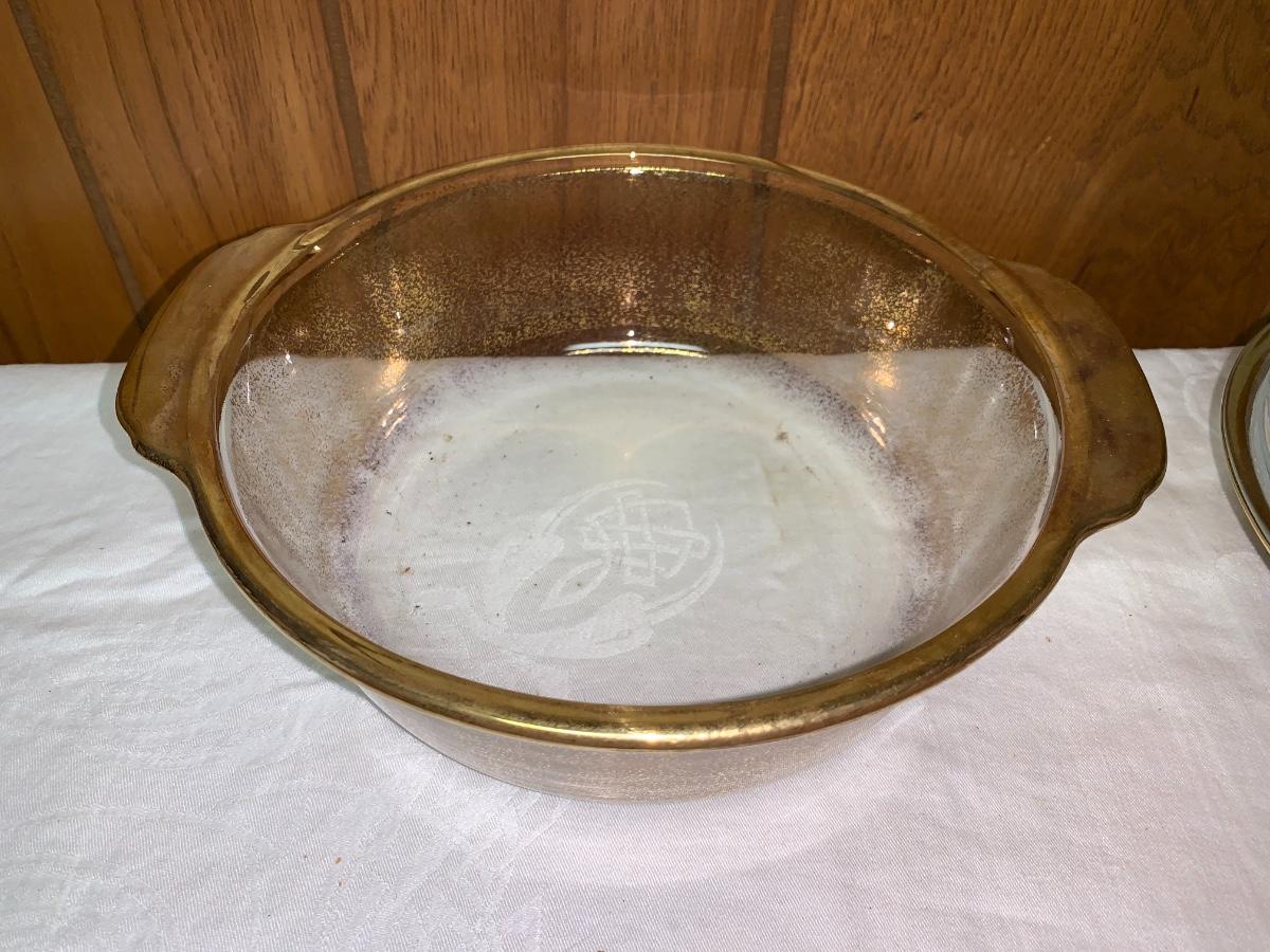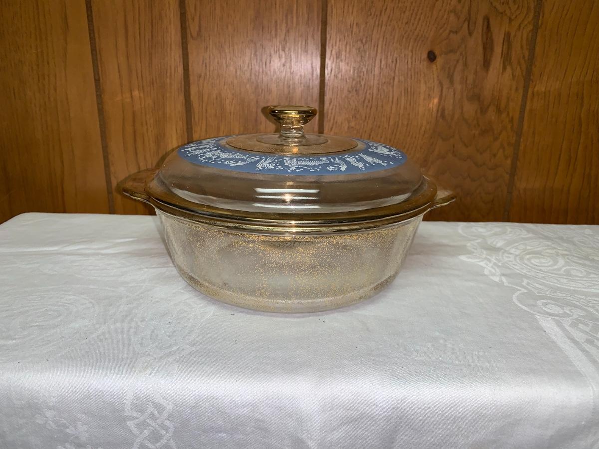 Fire King 408 Grecian Hellenic Top with Gold Flecks Bottom 2 Qt. Casserole Dish