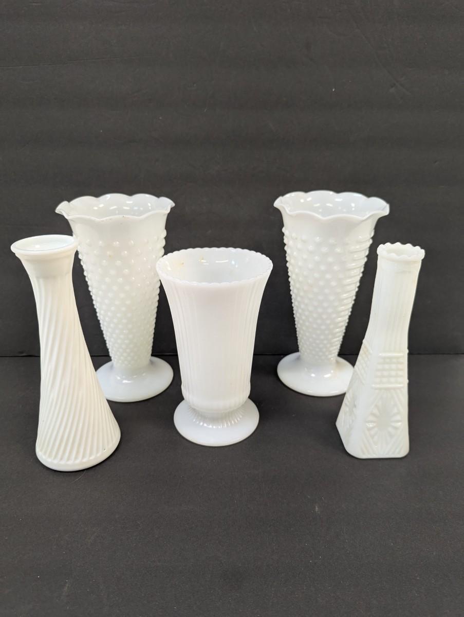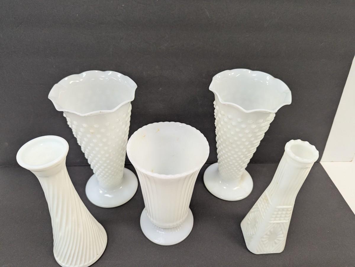 Fire King Milk Glass Hobnail Pot Anchor Hocking Vases #46