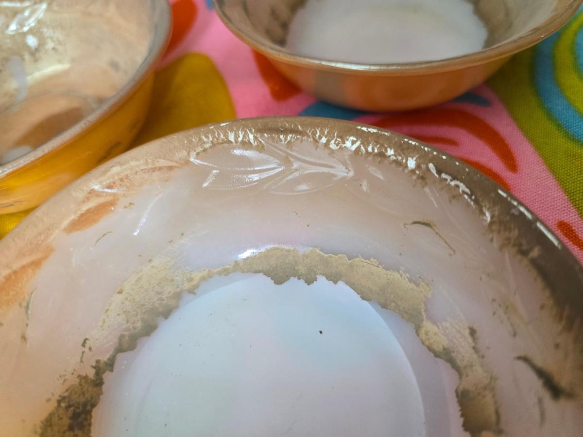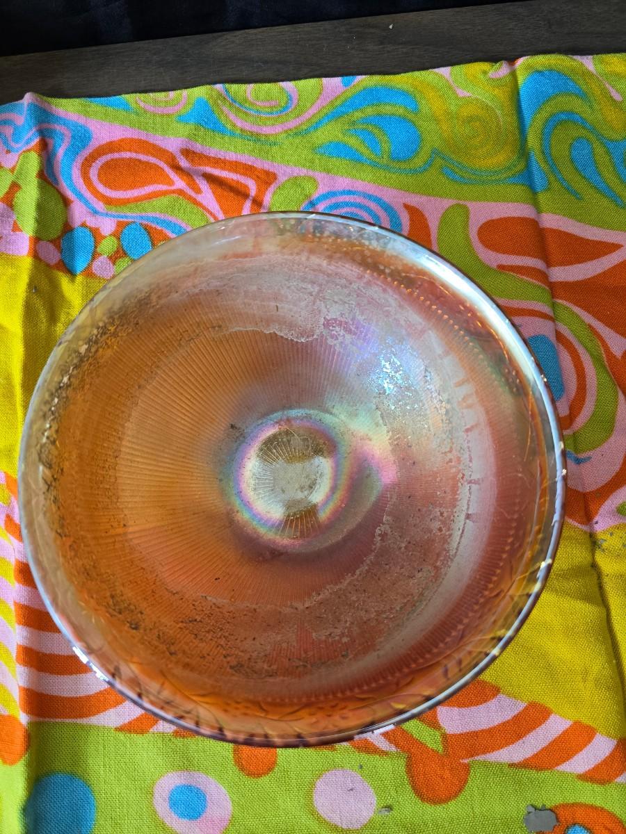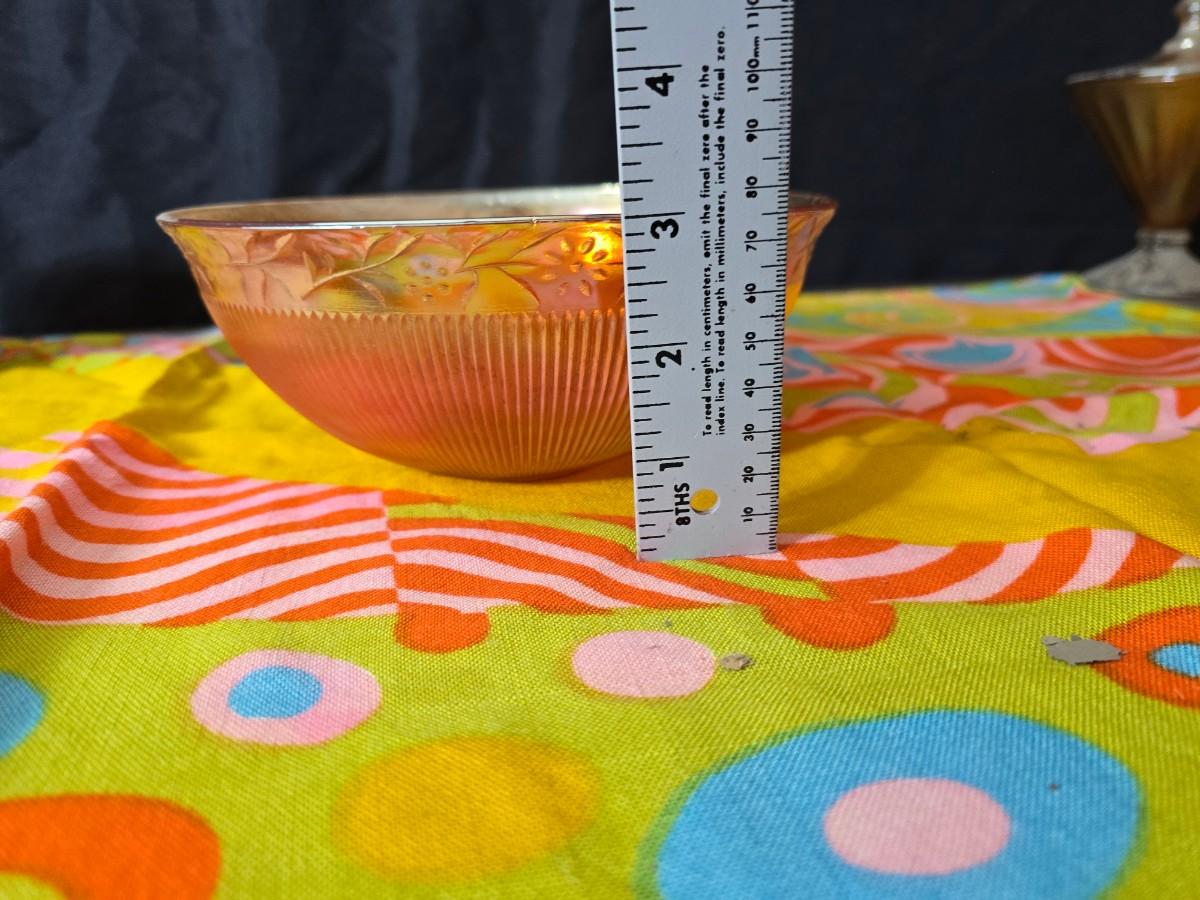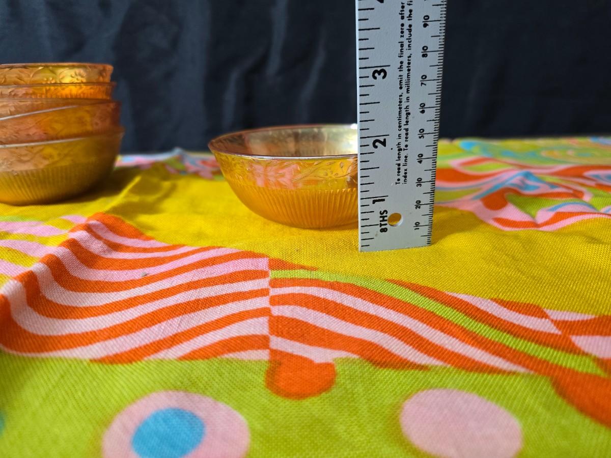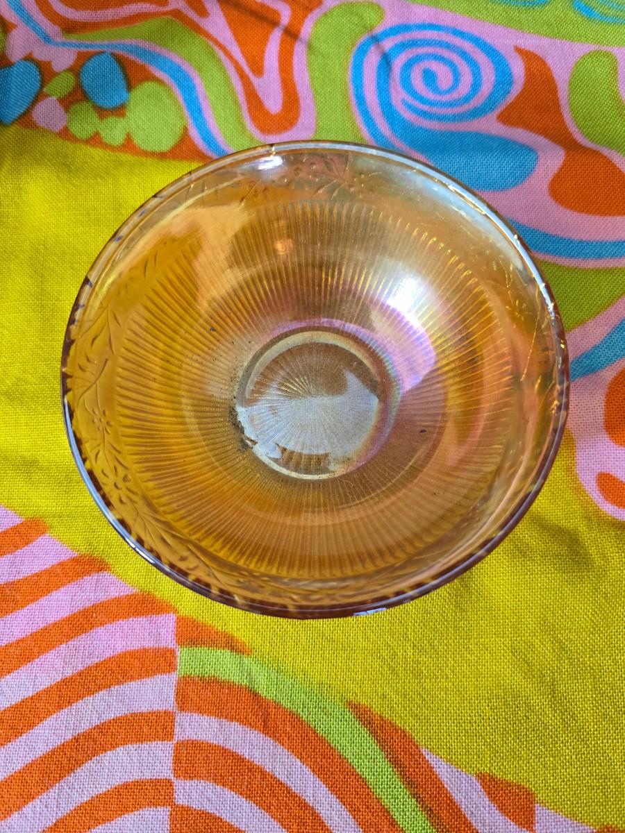 Fire king orange lusterware with a fun & funky vintage tablecloth