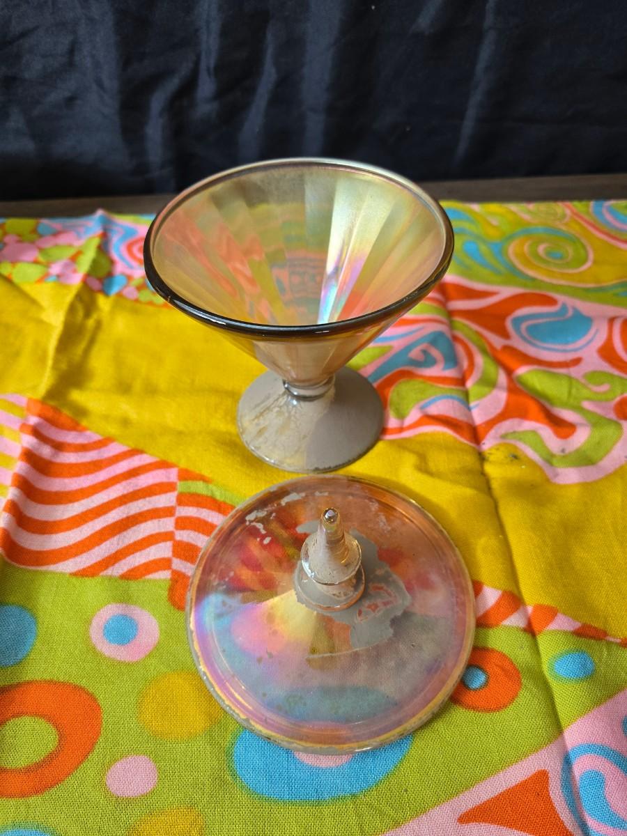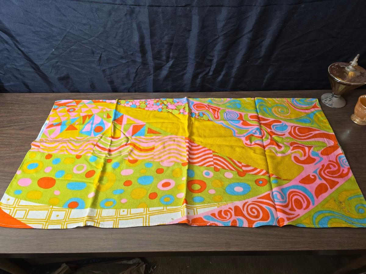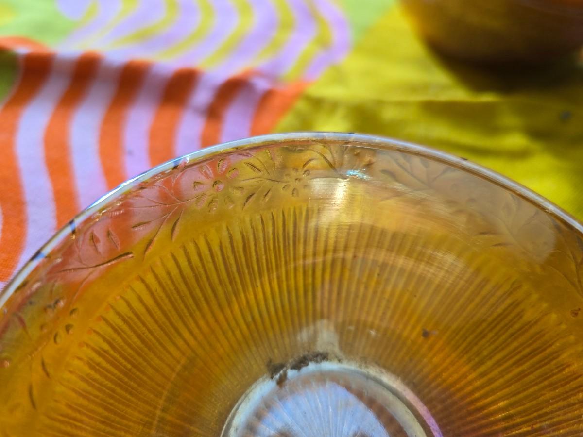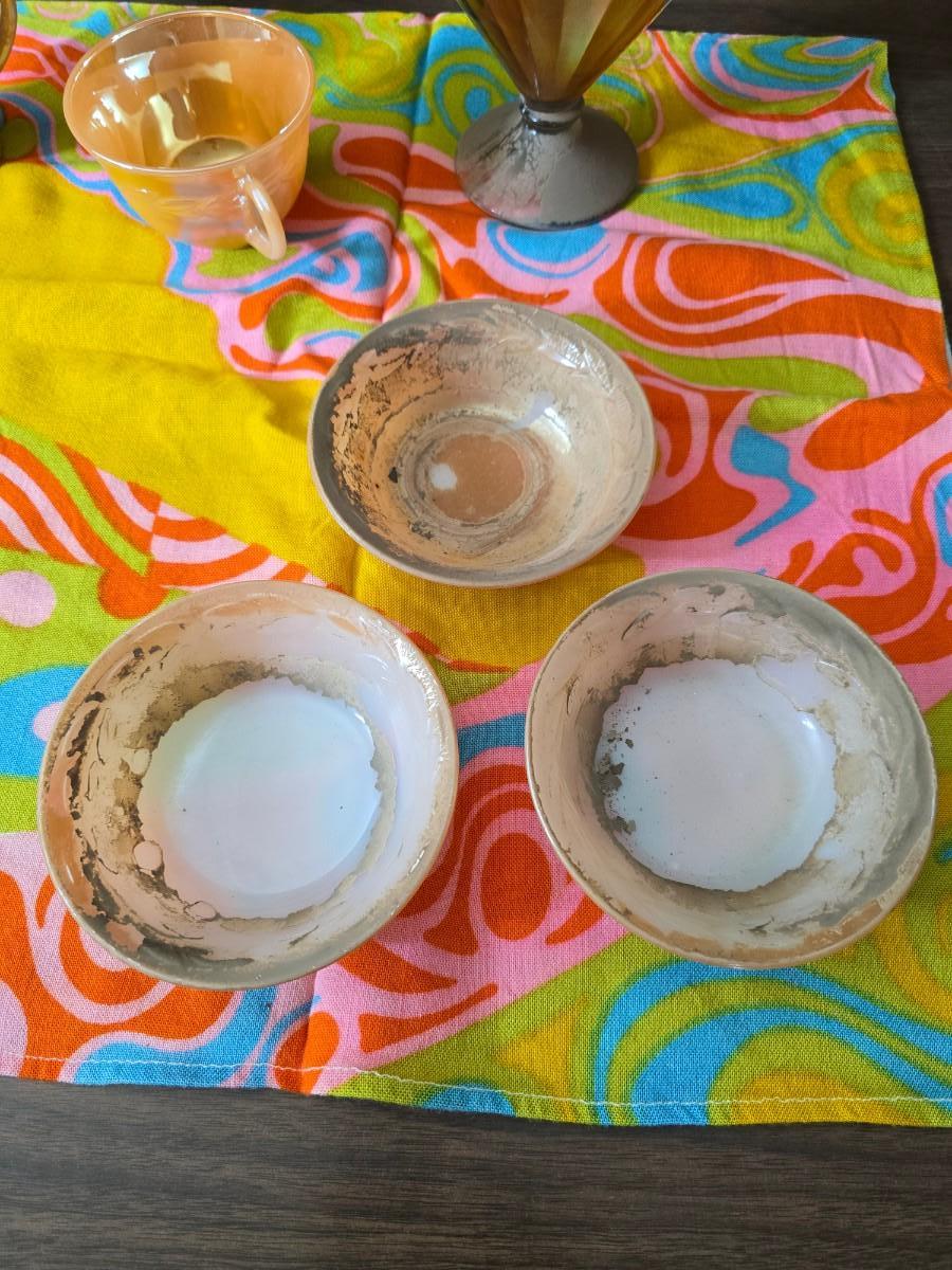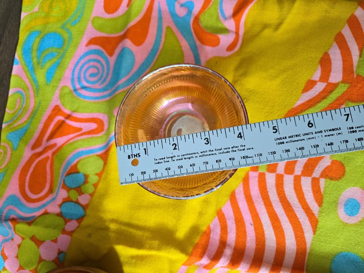 Fire king orange lusterware with a fun & funky vintage tablecloth