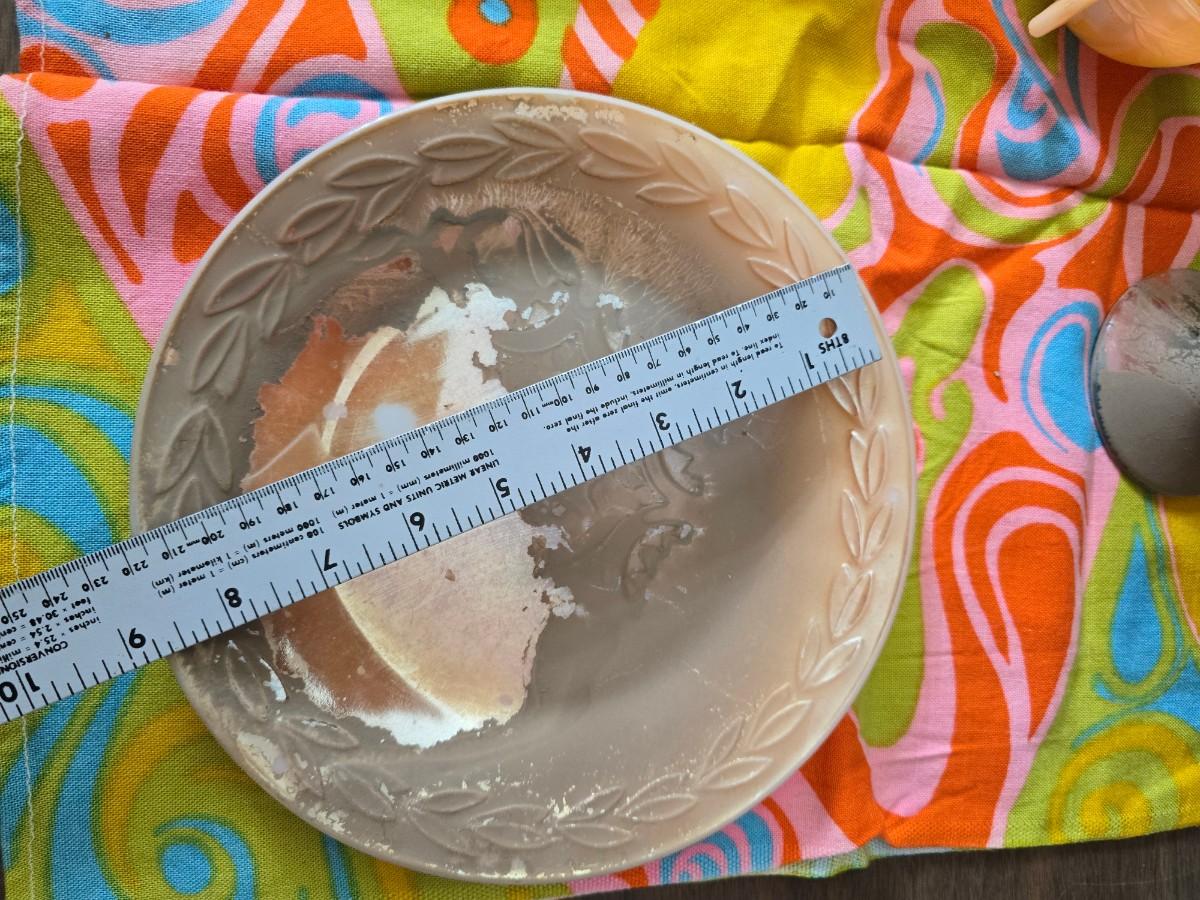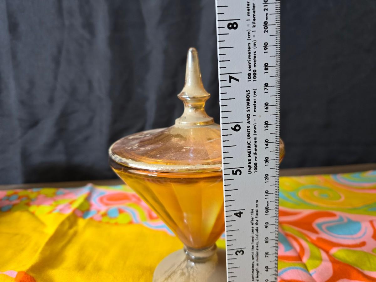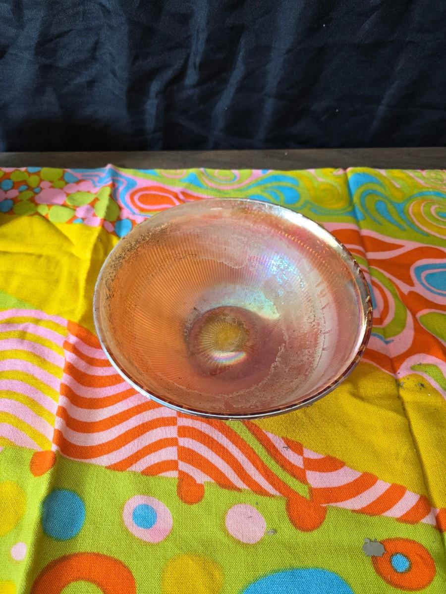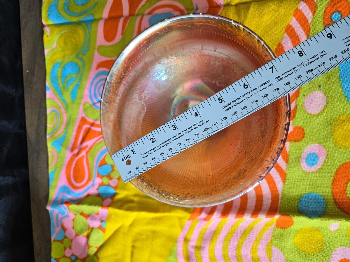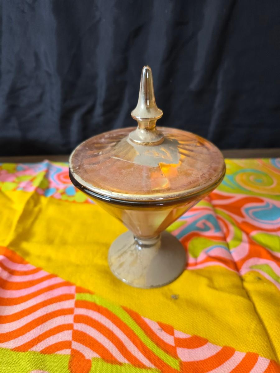 Fire king orange lusterware with a fun & funky vintage tablecloth