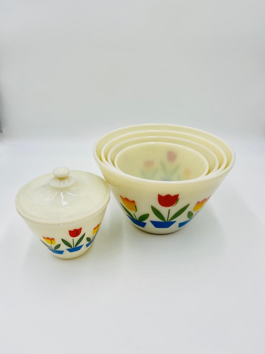 Tulip ~ 4 Nesting Bowls and a Lidded Grease Bowl
