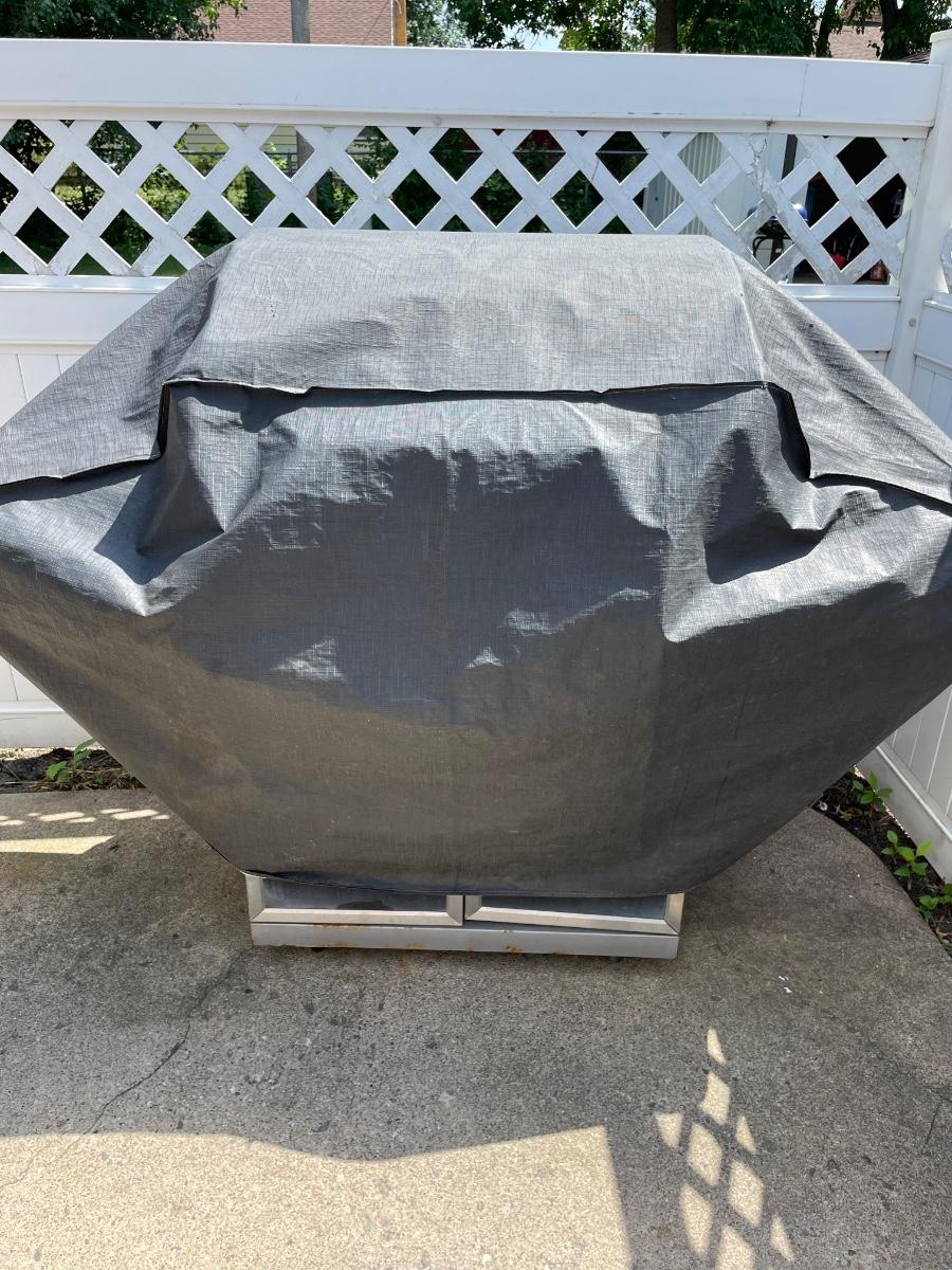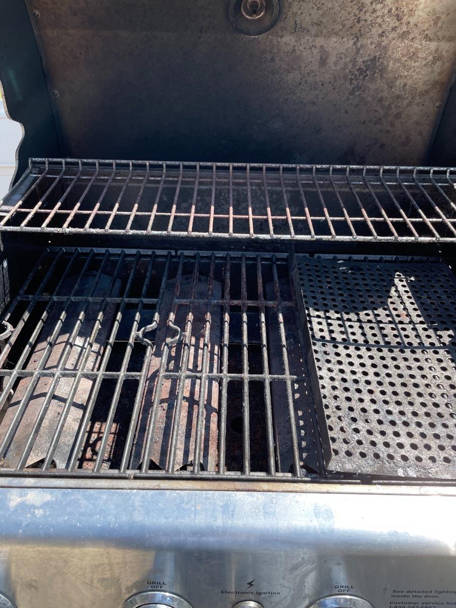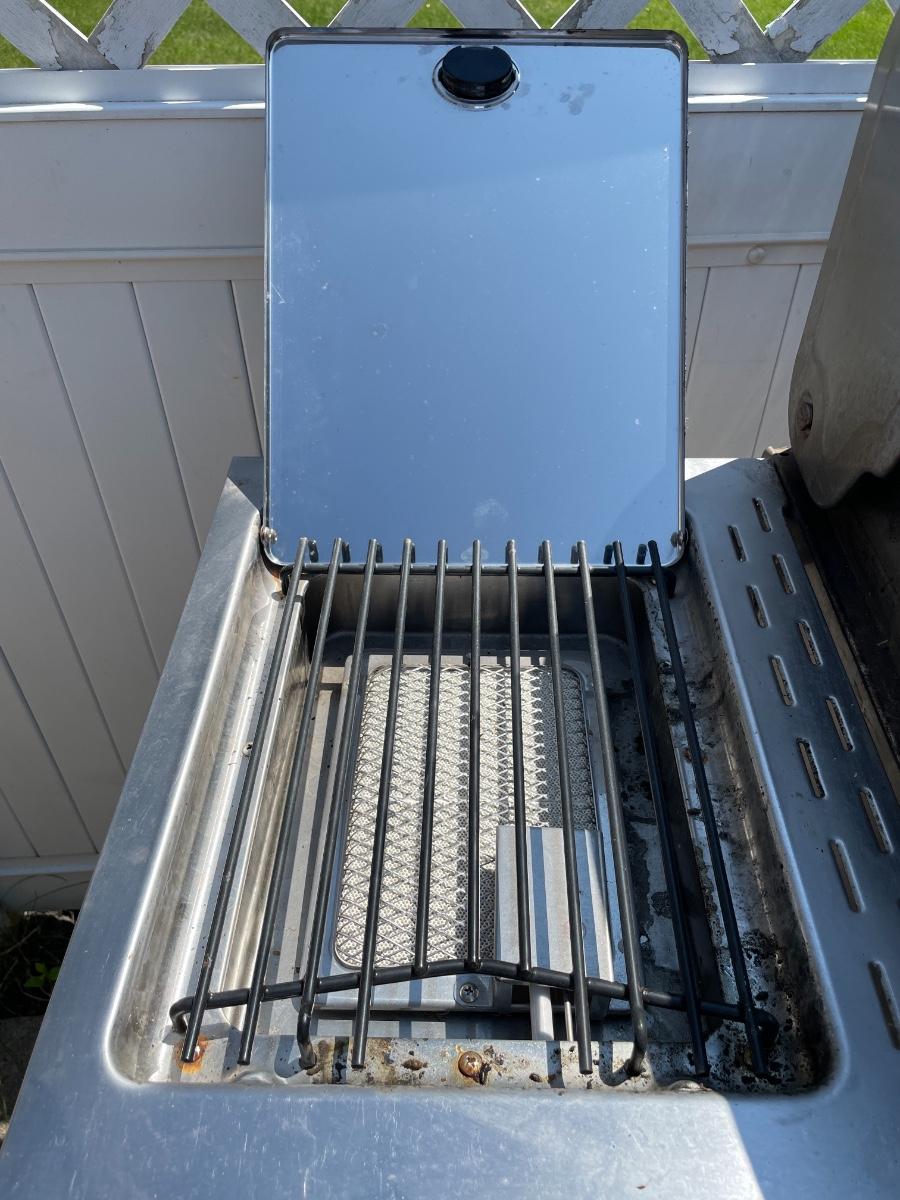 Fire King Propane grill with 2 burners and cover. Has ignition button. Works great!