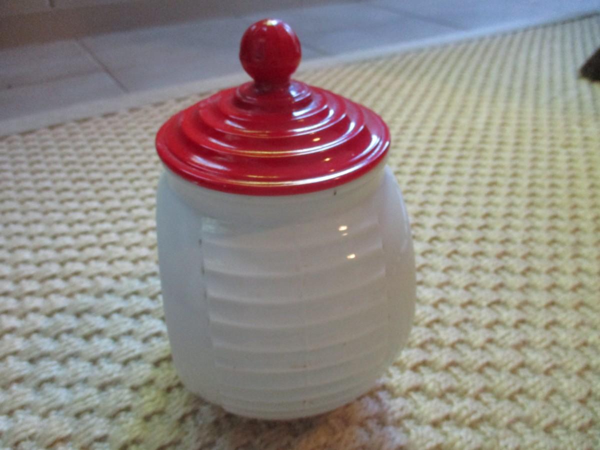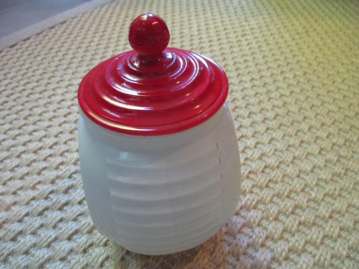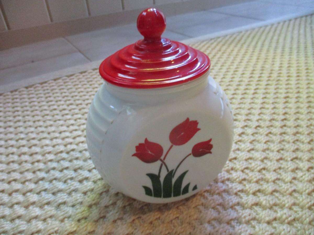 Fire King Red Tulip Jar With Lid - A