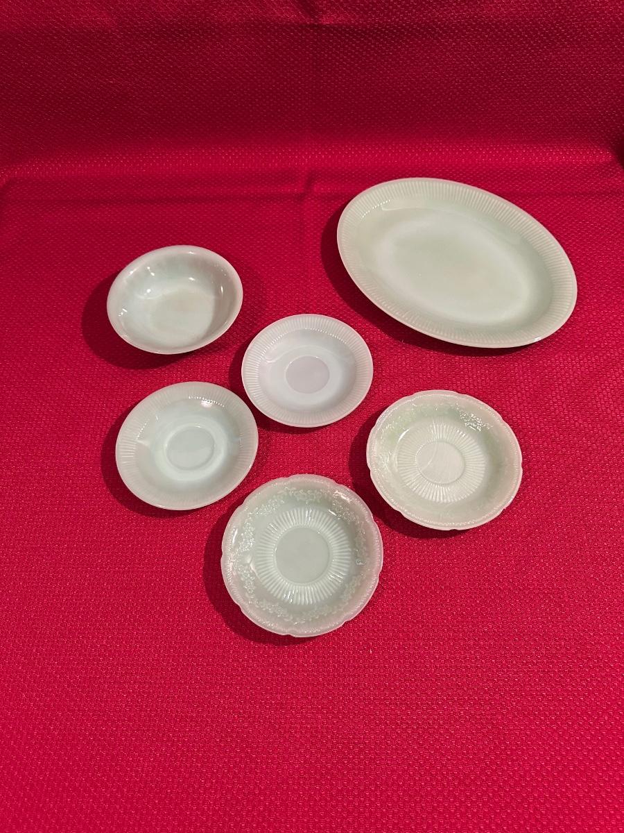 FIRE KING SAUCERS, PLATTER AND BOWL
