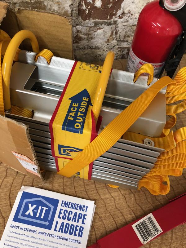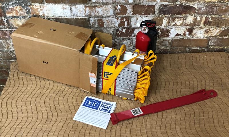 Fire safety with this lot including an extinguisher..a gas cut-off devise and an X-IT EMERGENCY ESCAPE LADDER...New condition...