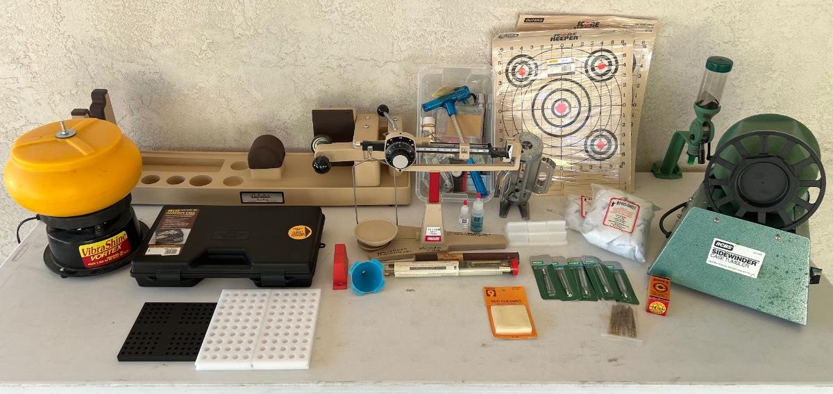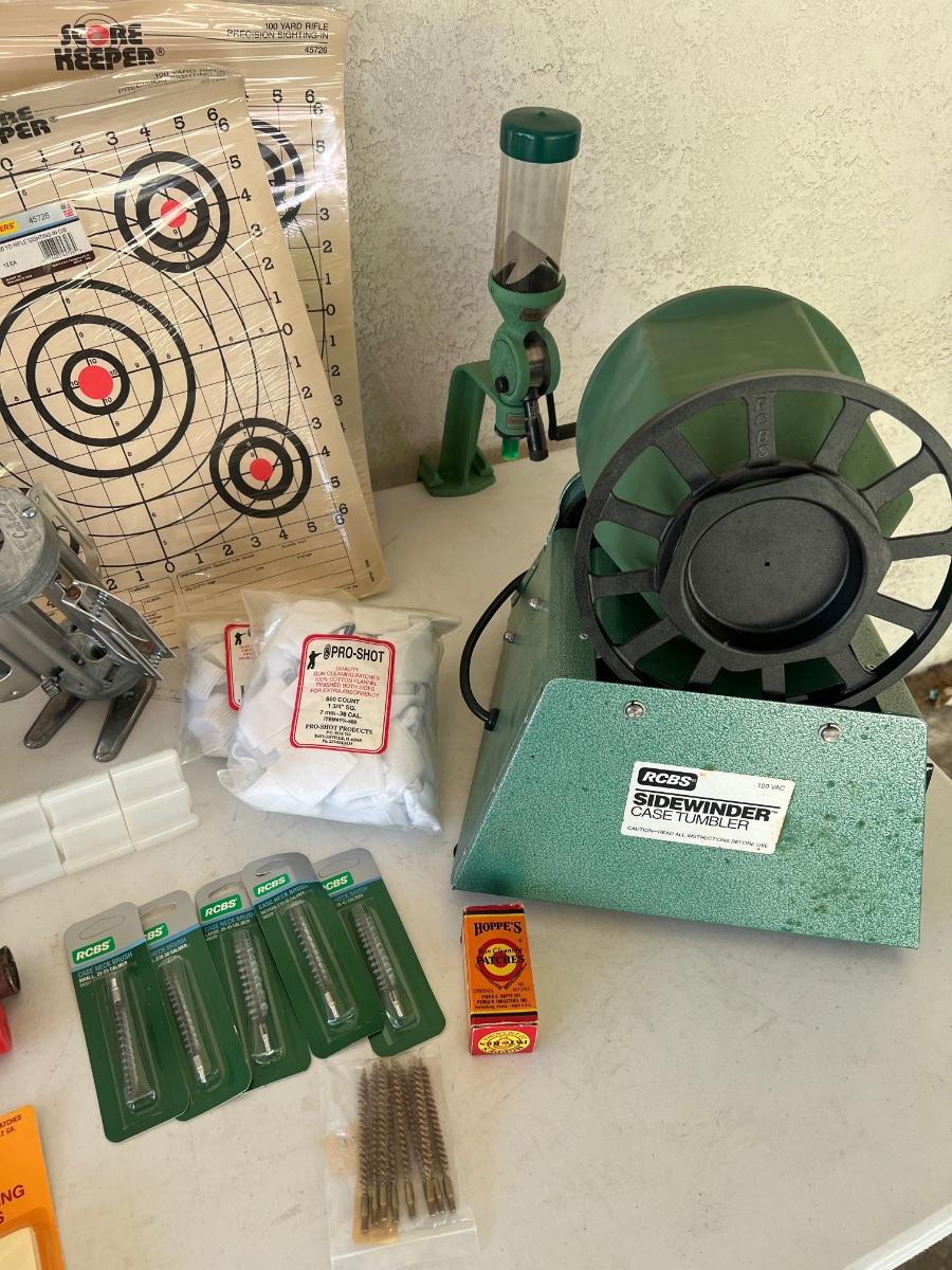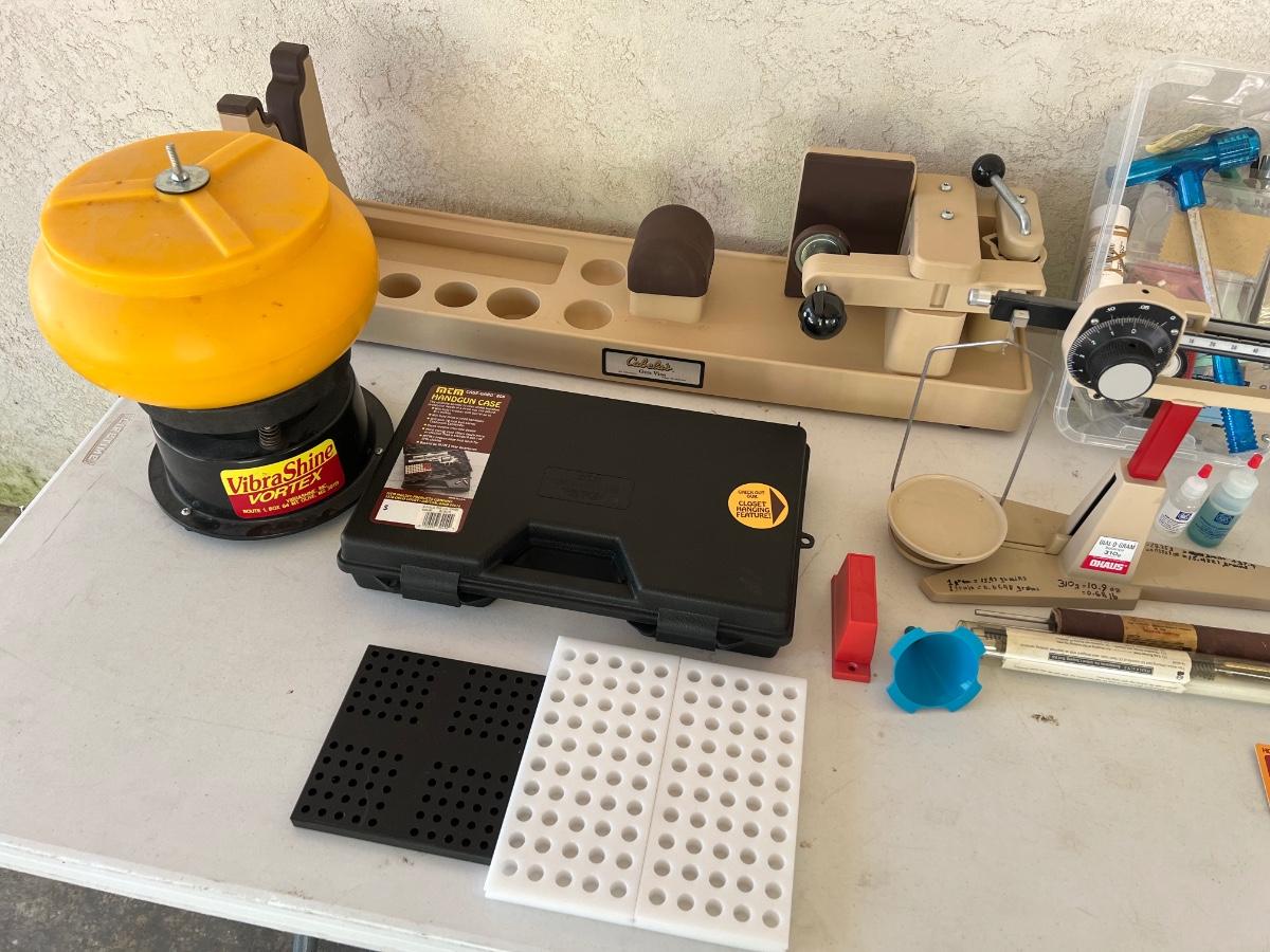 Comes with everything pictured. RCBS Case tumbler and Vibrashine vortex has been tested and work as they should. See pictures for condition and contents.