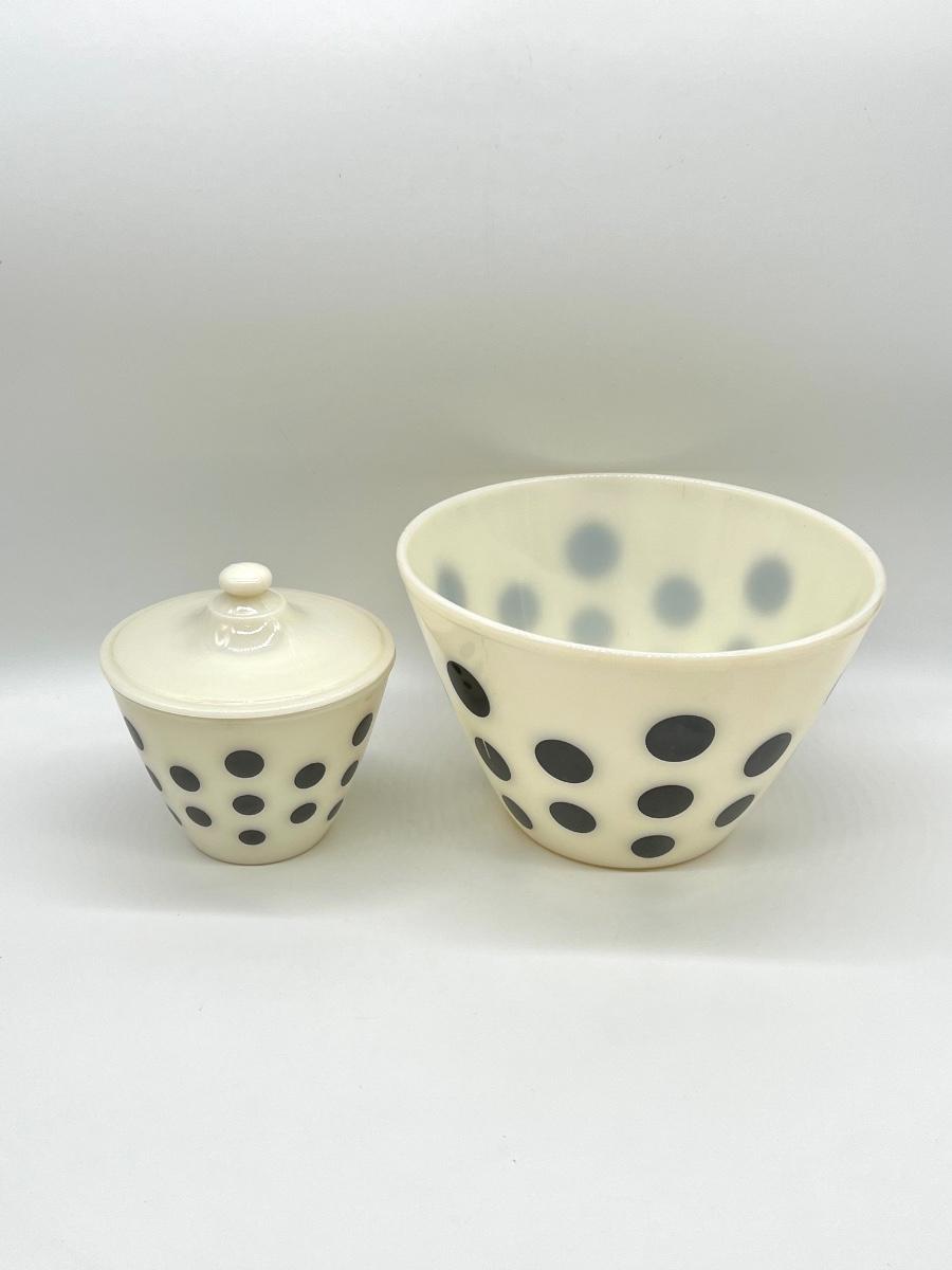 FIRE-KING ~ Black Dot ~ Grease Jar & Mixing Bowl