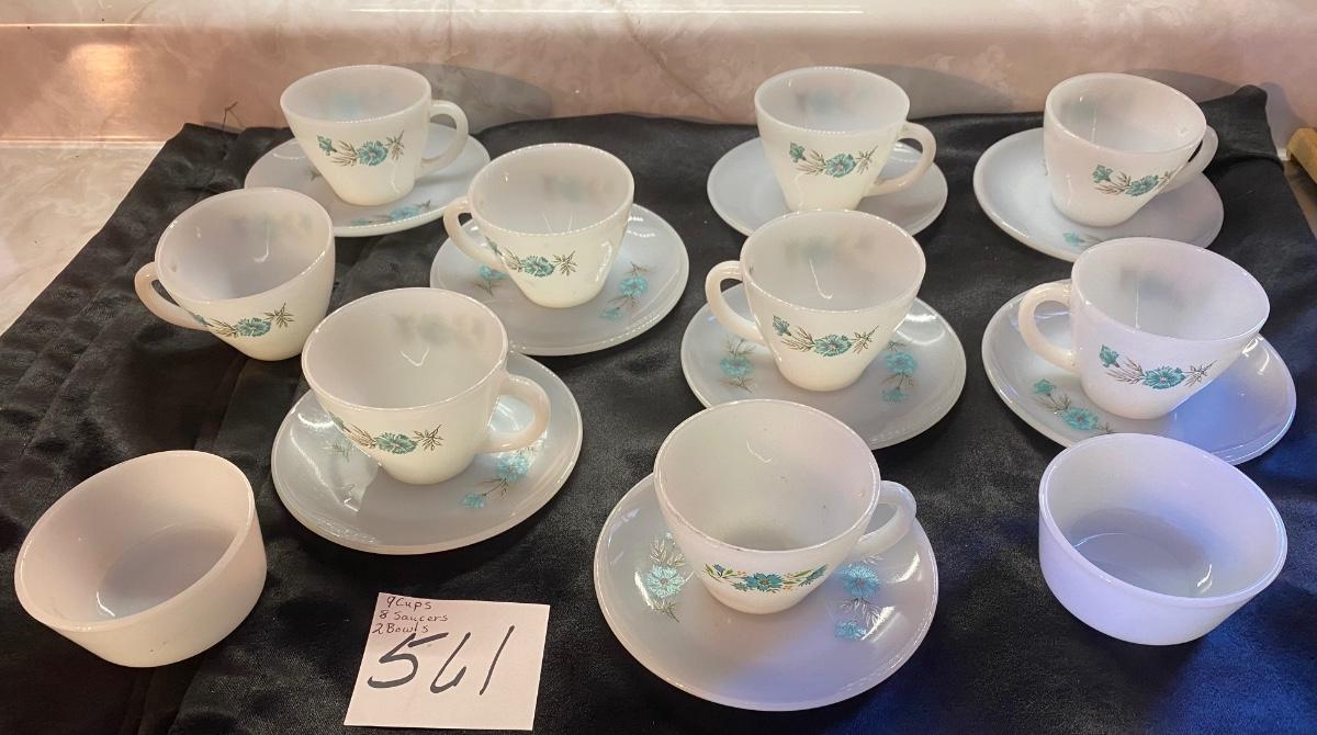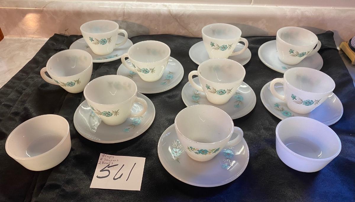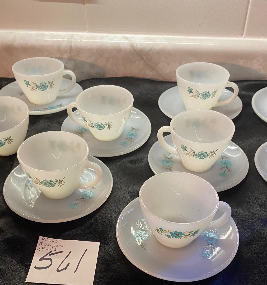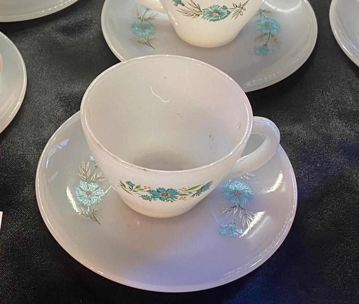 FireKing Bonnet Blue Cups, Saucers and Bowls