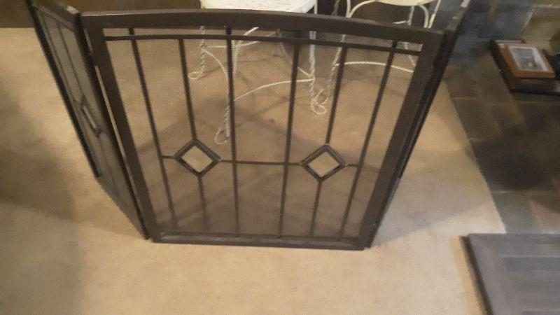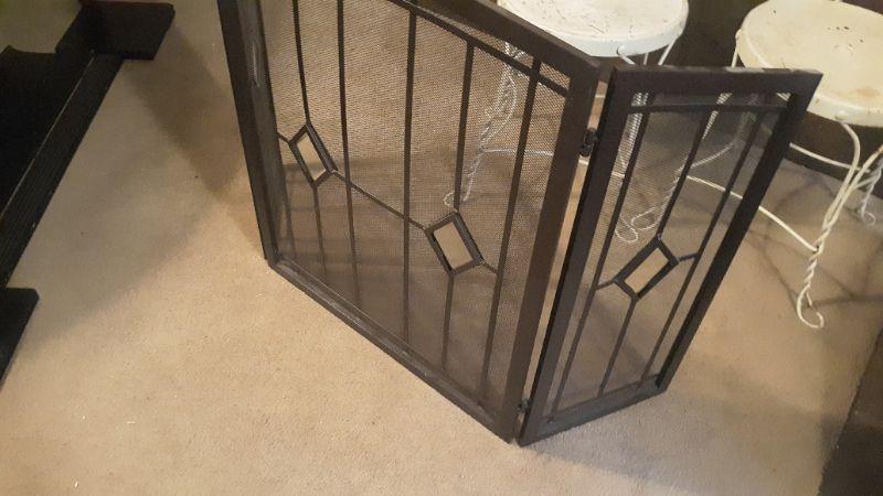 3 PANEL HINGED IRON FIREPLACE SCREEN WITH GLASS DIAMOND SHAPES