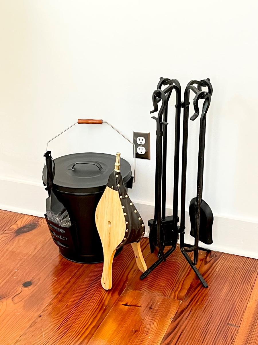 Includes ~ Iron Five (5) piece tool set ~ Metal ash bin with shovel ~ Wood bellow