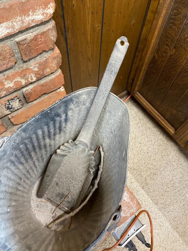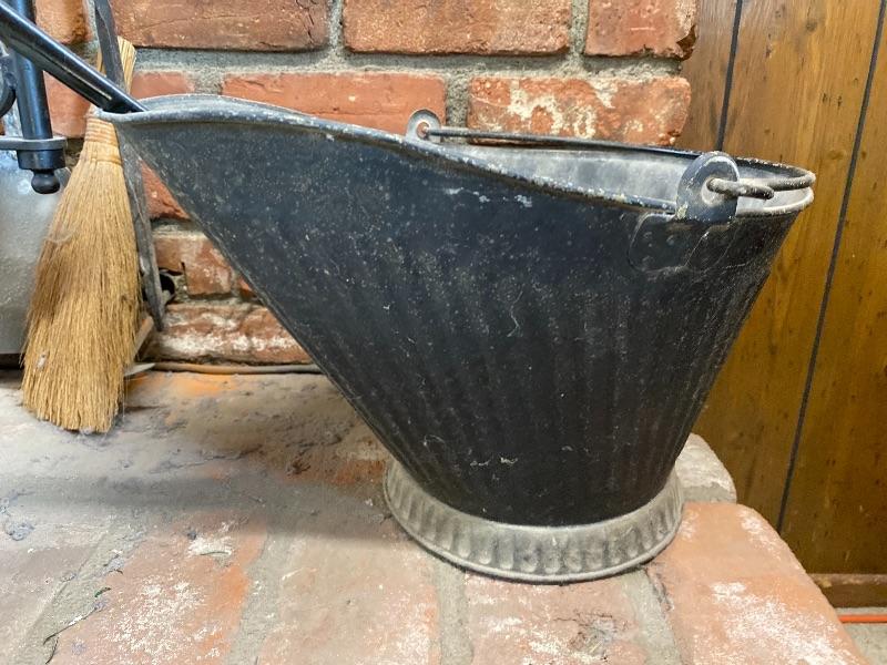 Vintage black metal coal and ash bucket. About 12” tall. Great rustic look. Dusty from display on fireplace hearth.