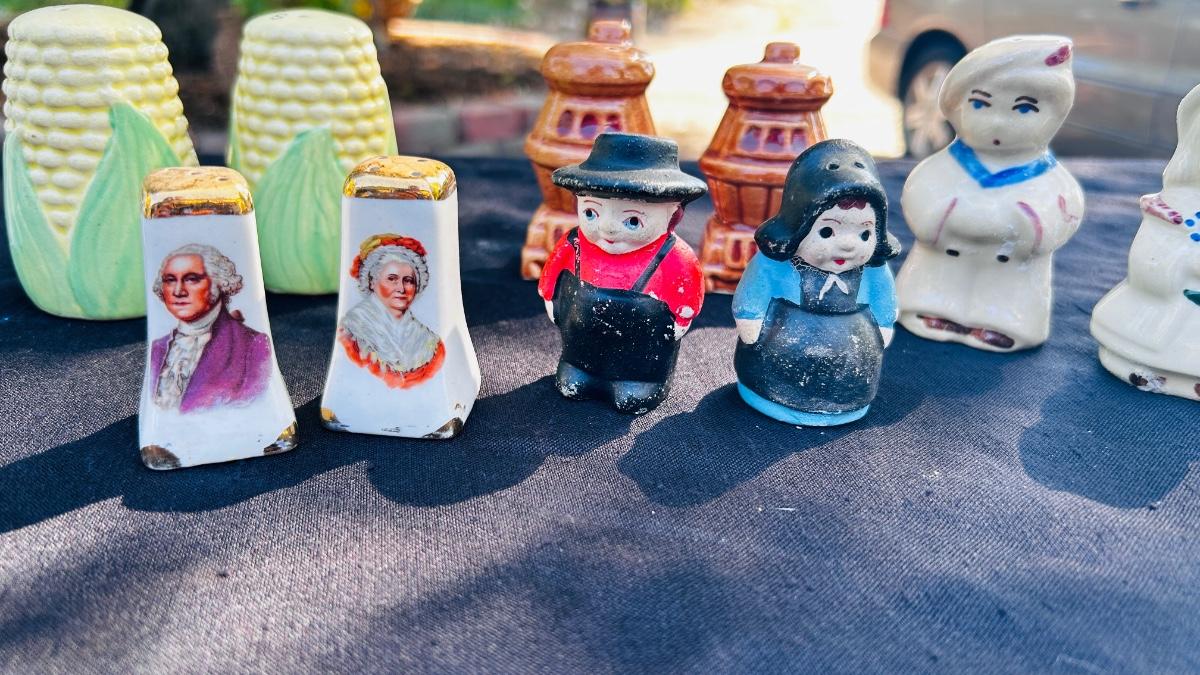 WOOD BURNING STOVES, CORN ON THE COB, PILGRIMS, GEORGE AND MARTHA WASHINGTON SALT AND PEPPER SHAKERS AND MORE