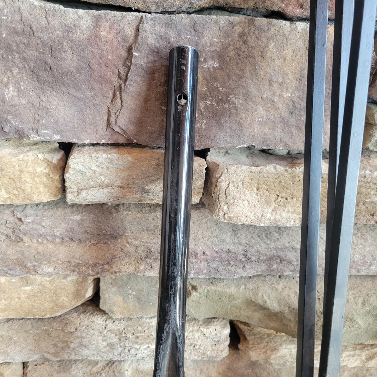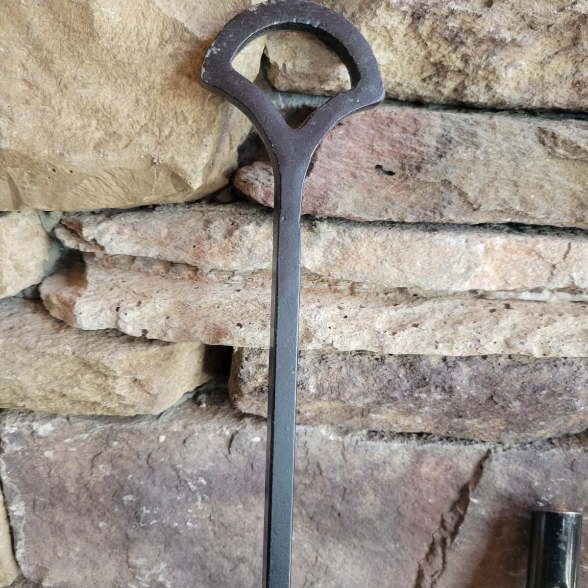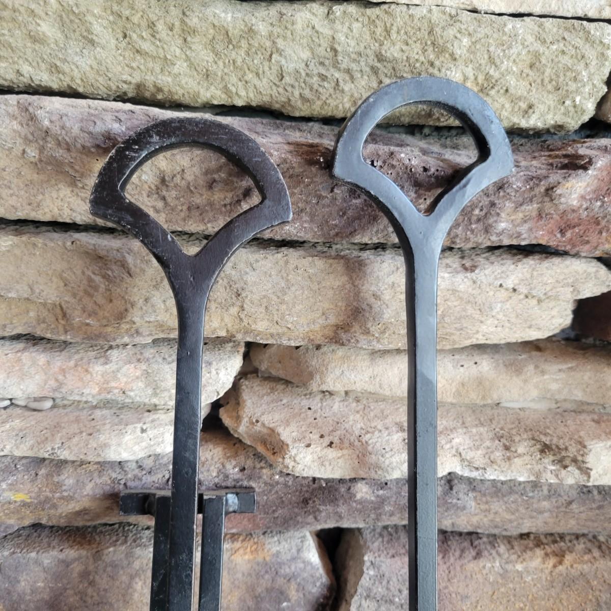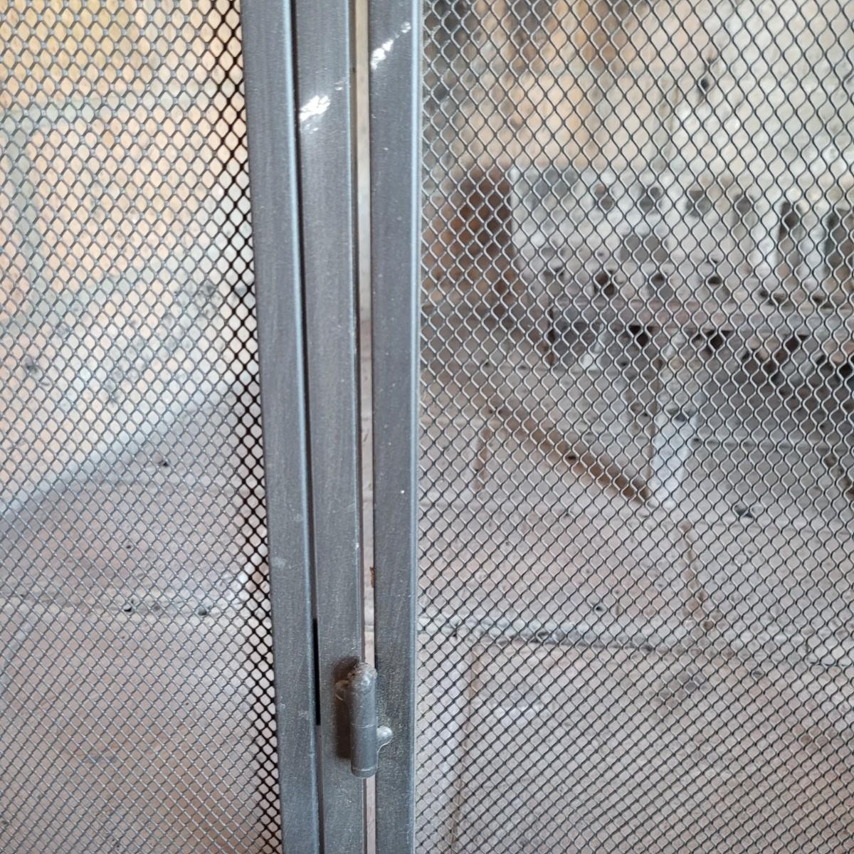 A fireplace screen and accessories in good condition. Note the metal grate is not included. Included in this lot is a three panel fireplace screen that has front doors that open. It is made of metal and measures approximately 48" x 30" x .75". Lot also includes a broom fire poker and log grab with wrought iron handles. The dust pan is a different style and appears to be made of steel and painted. Additionally, there are two packs of matches. Local pickup only