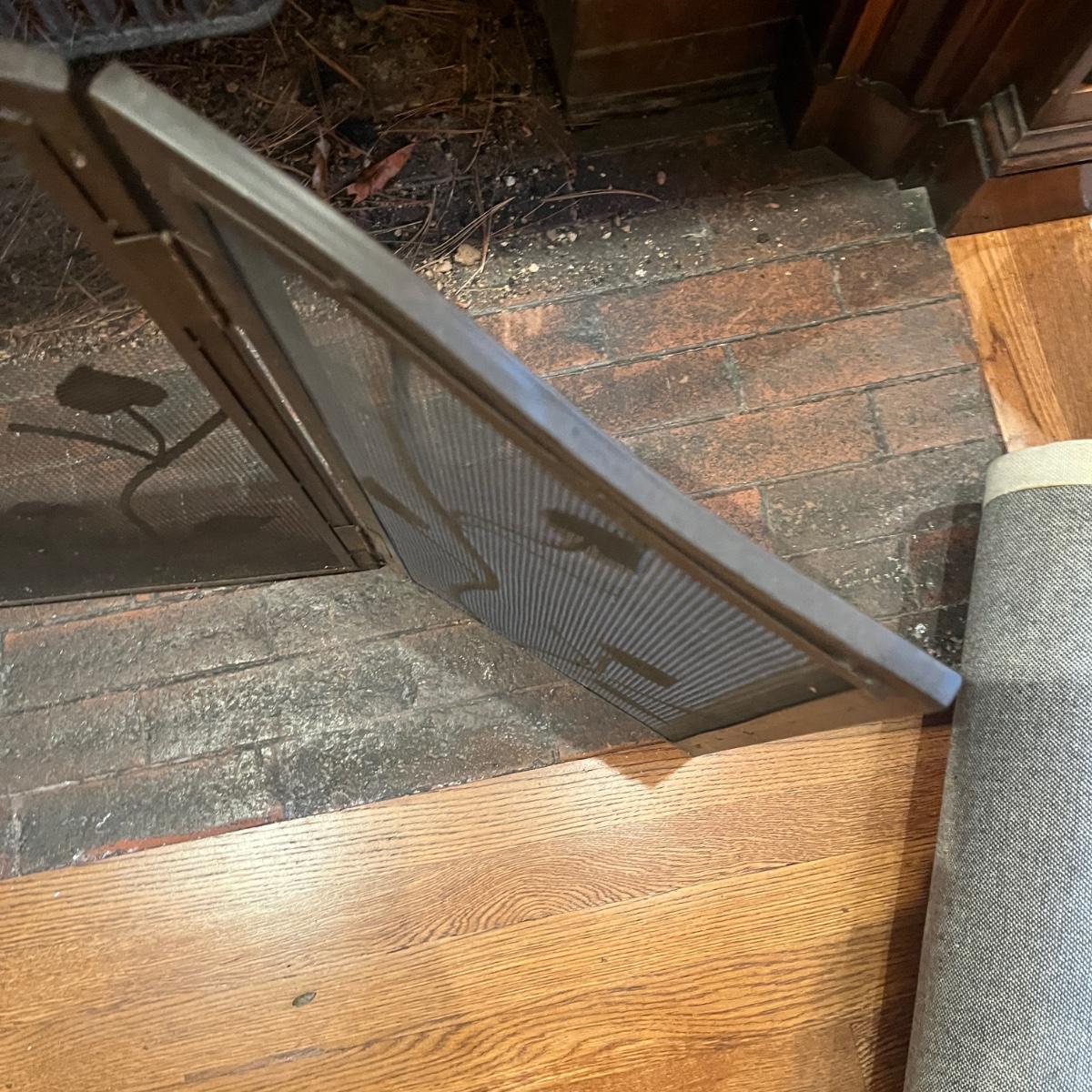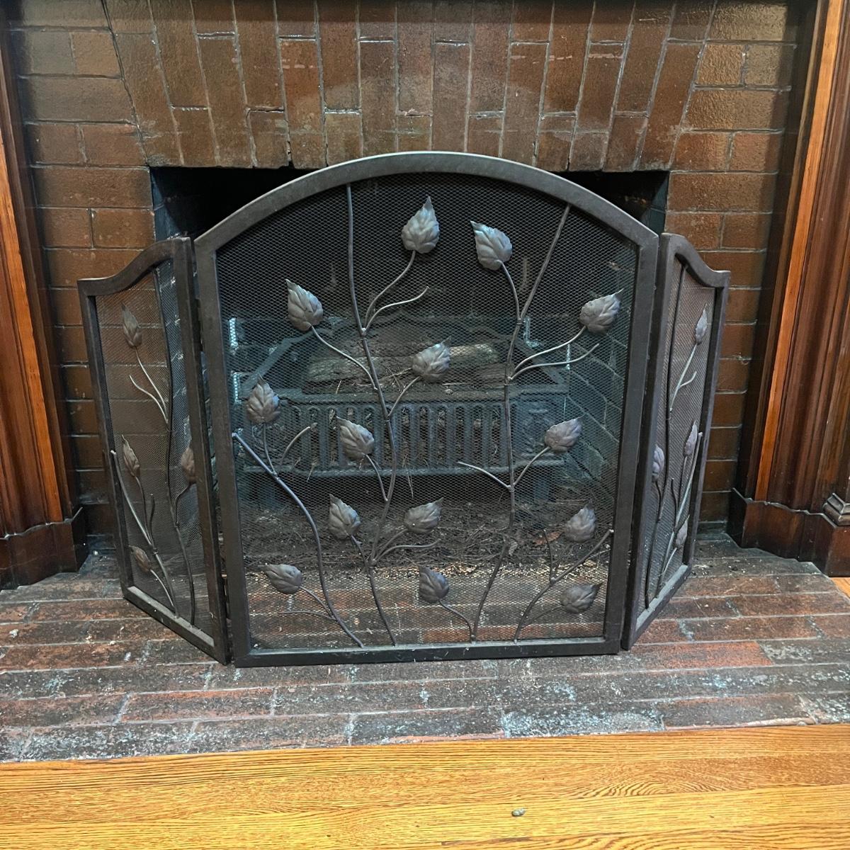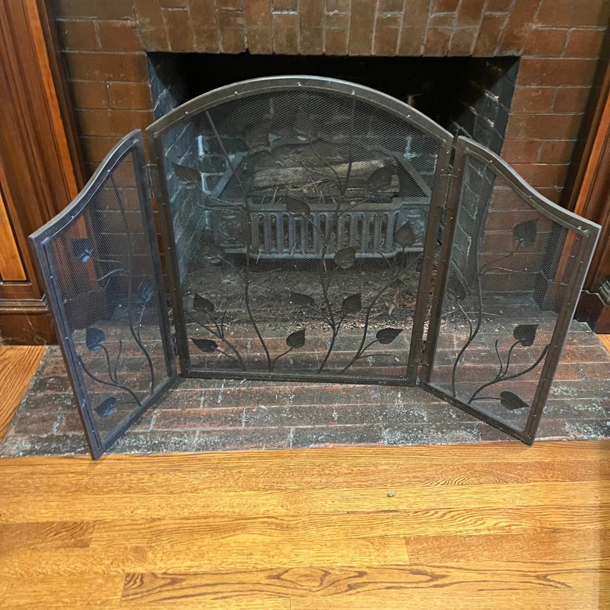 Lot includes a metal folding fireplace screen with leaf design. Screen measures 48” x .5” x 29”H.