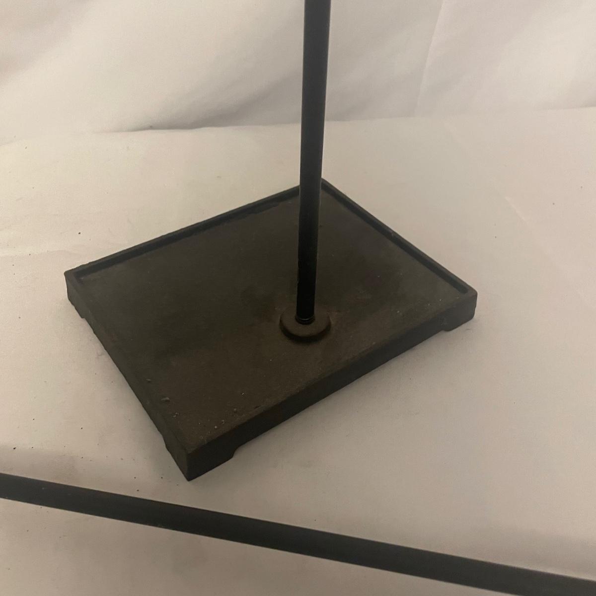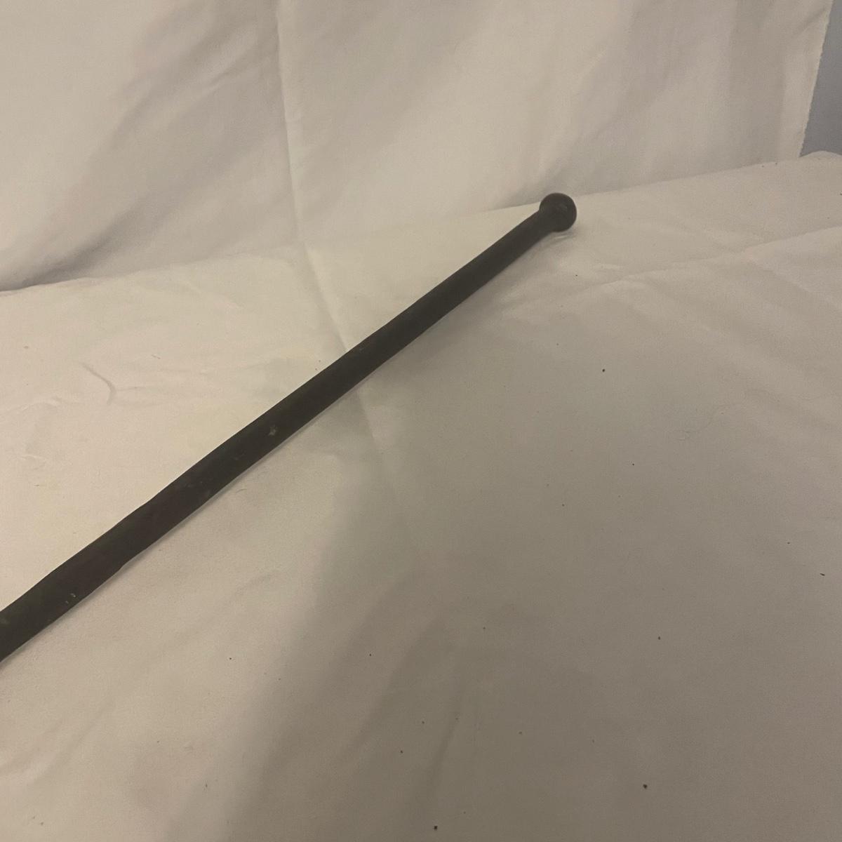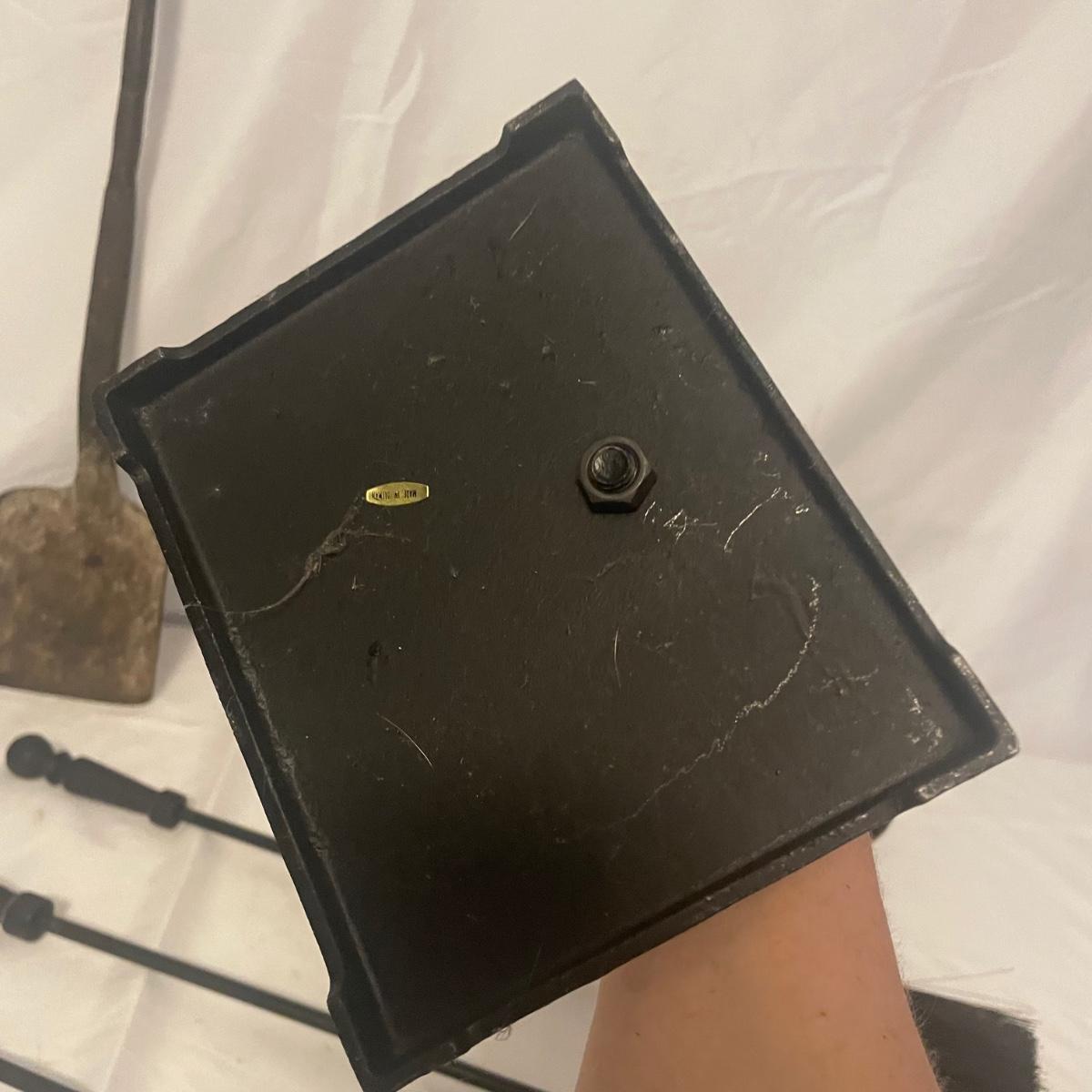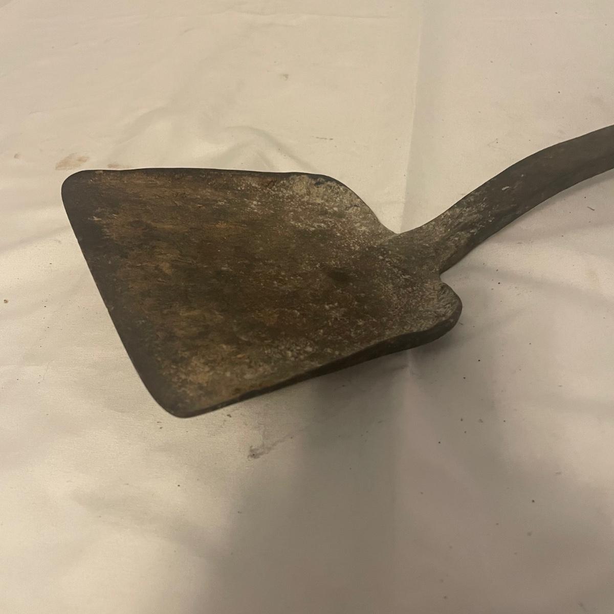 This iron fireplace tool holder comes with 4 tools and there is also a heavy iron shovel with a long handle that measures 31” long. All items are in good condition, although the shovel is quite used.