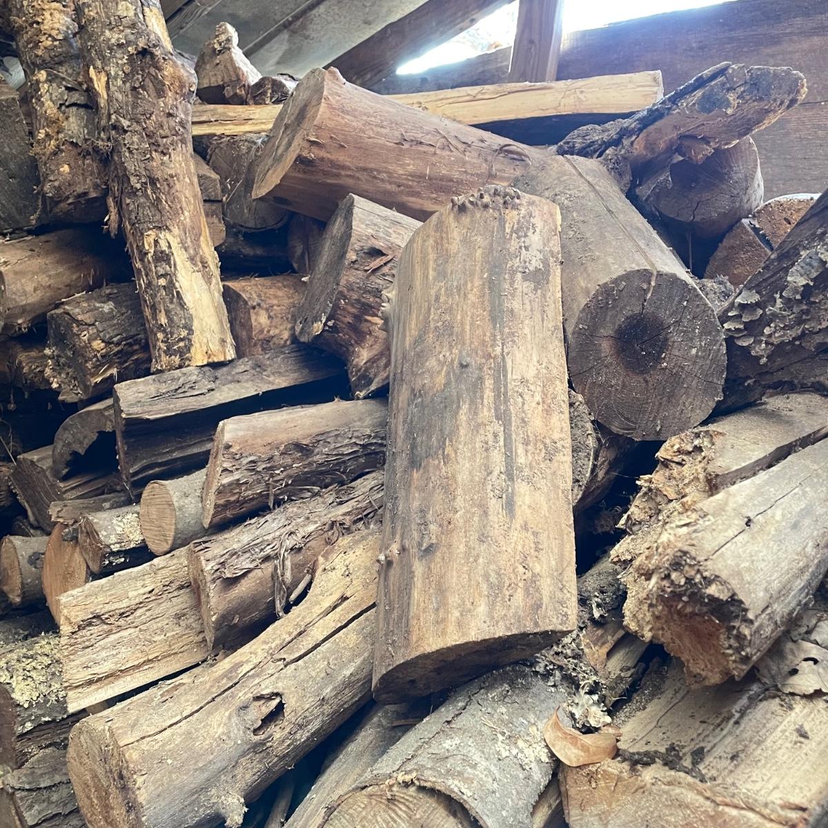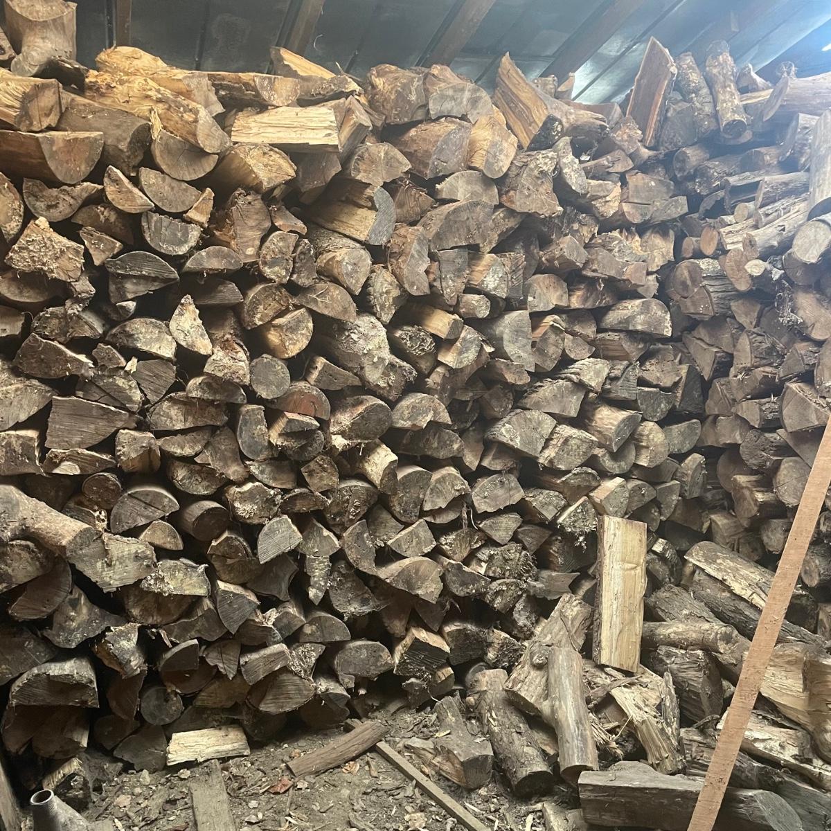 Large stack of wood, take it all or take just what you need. Wall of quartered wood is between 6.5 and 7 feet high. Sections are almost 2 feet long.