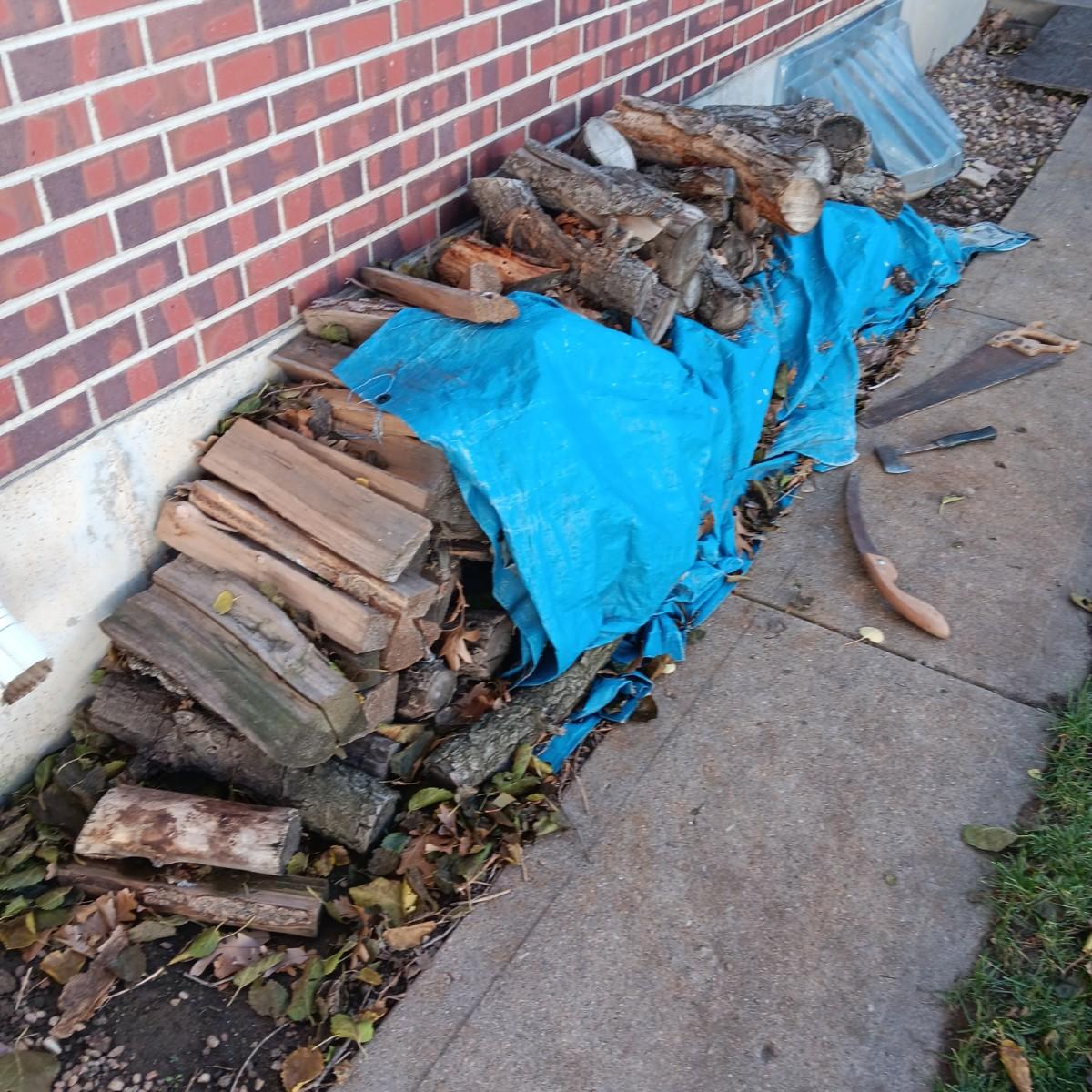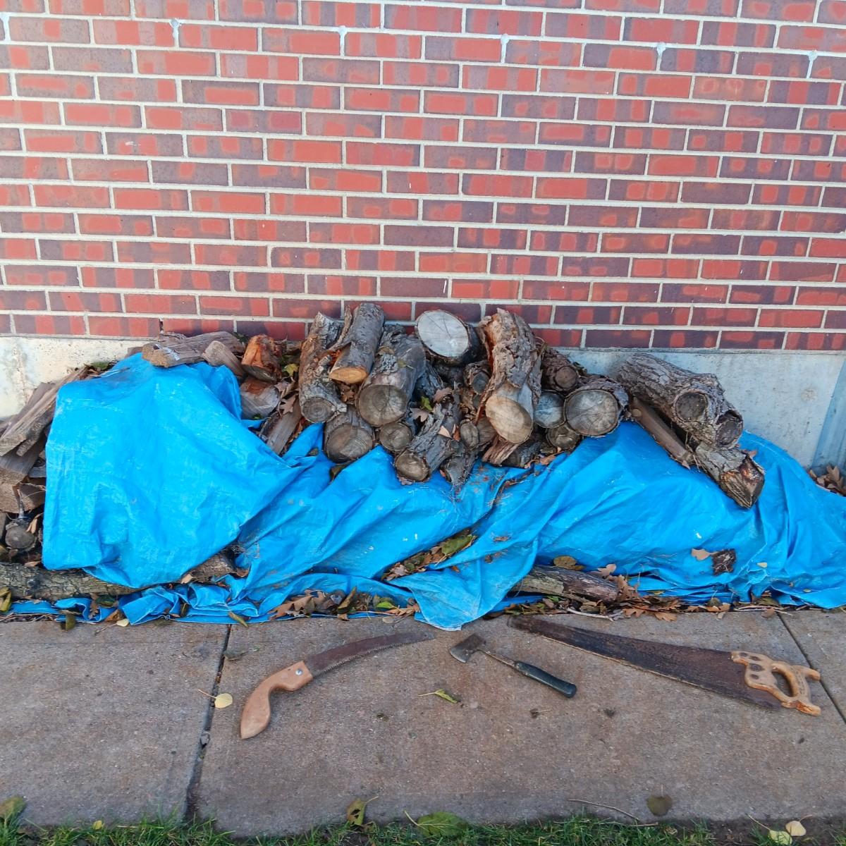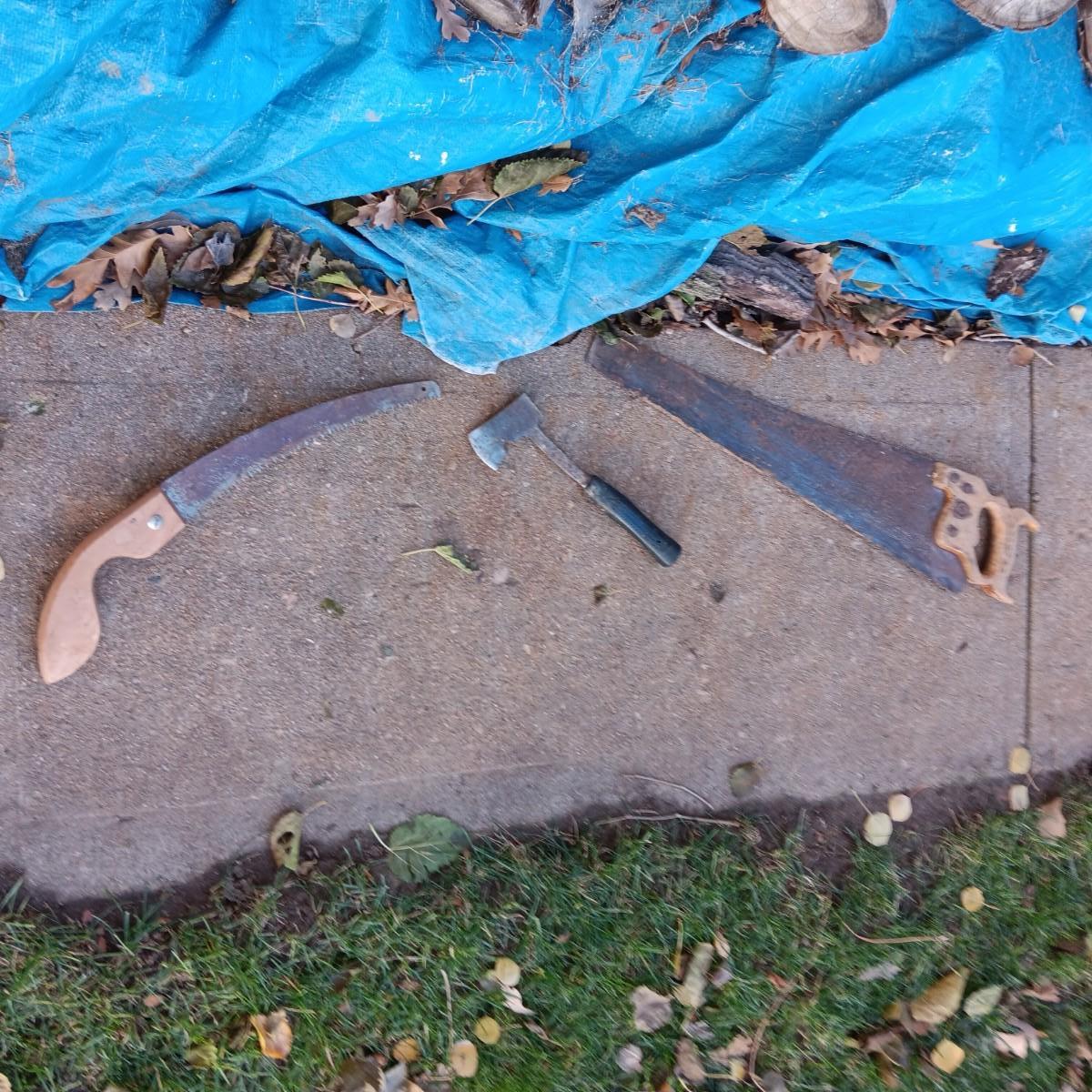 FIREWOOD, SMALL HATCHET AND 2 HAND SAWS