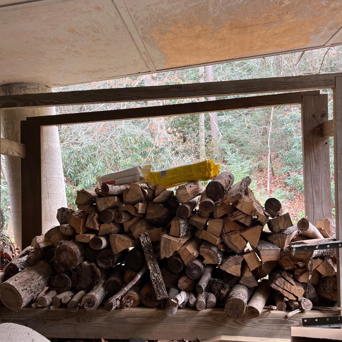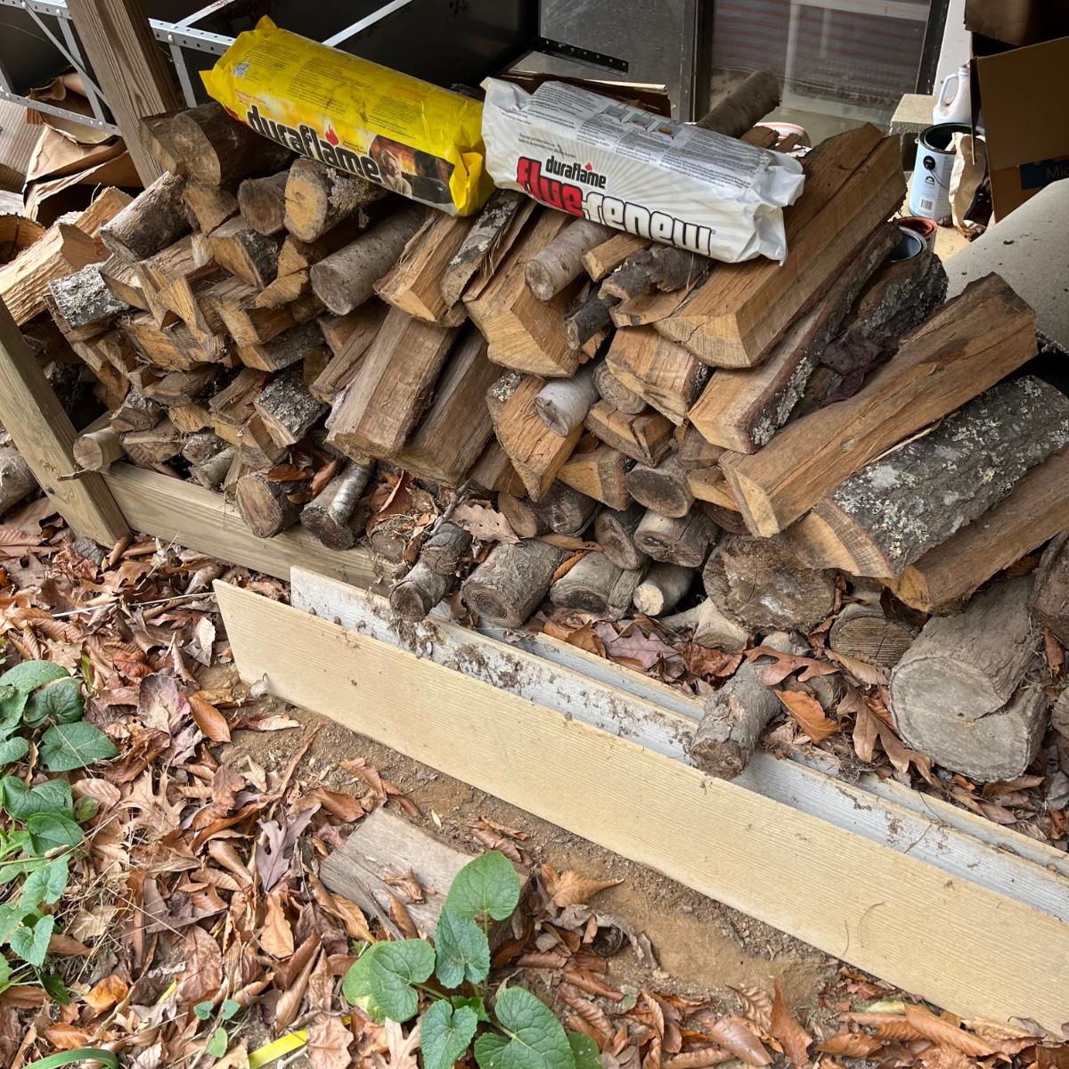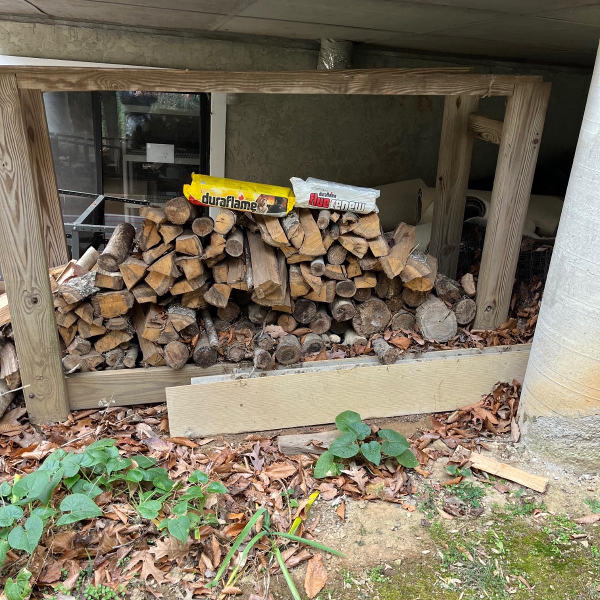 Lot includes split firewood, logs and a wooden rack. Wood will need to be loaded by winning bidder. Rack is available to the winning bidder, but not required. Rack measures 21” x 74” x 49”.
