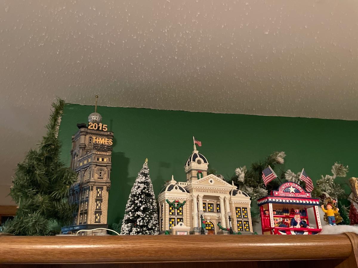 Fireworks stand, town hall & lighthouse snow village