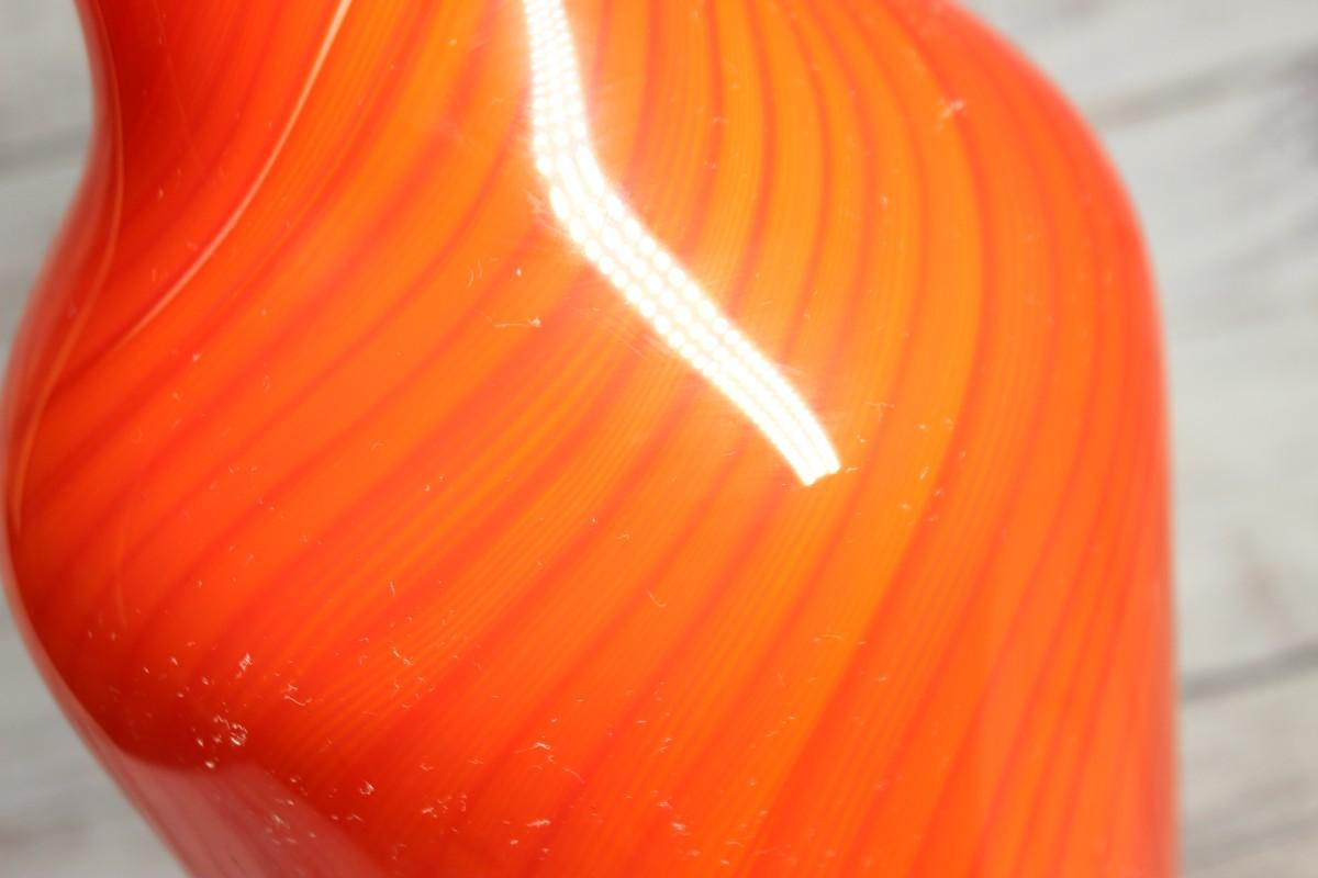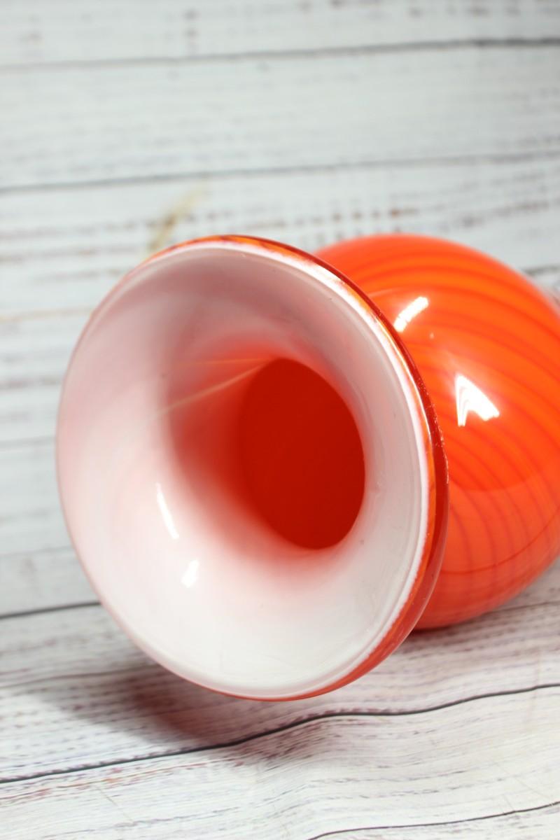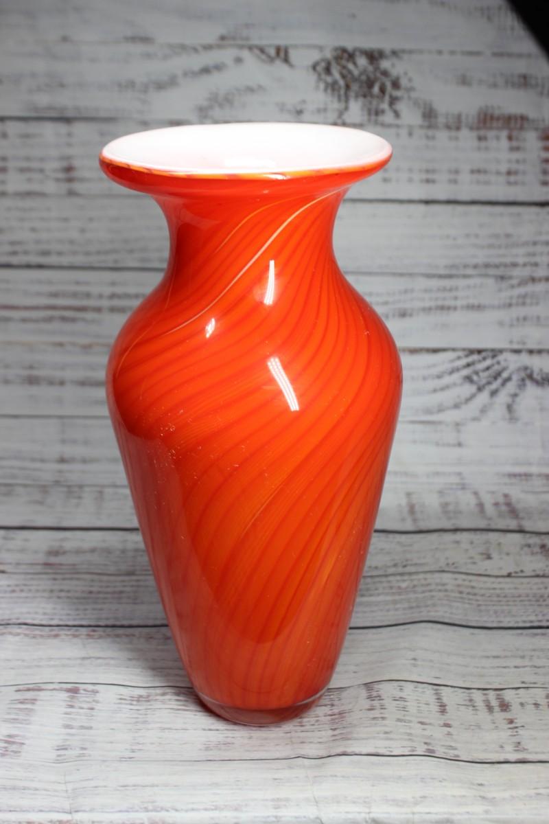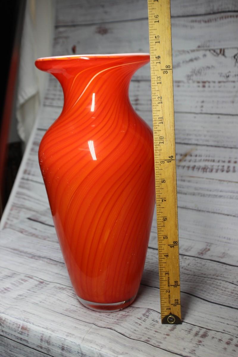 Firey Orange Swirl Blown Art Glass Vase