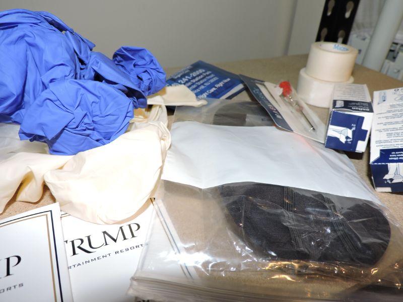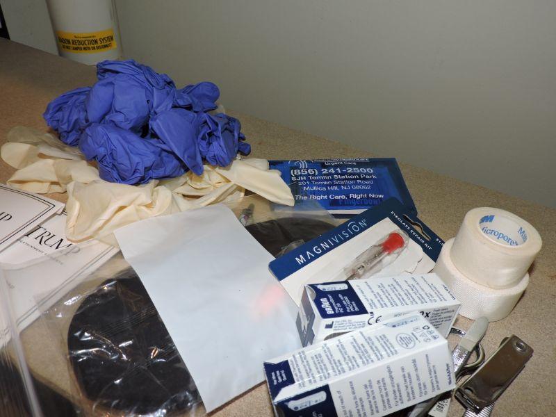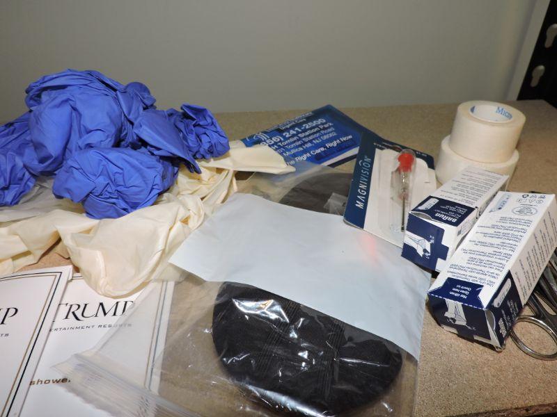 Gloves, eye glass tool, tweezers, nail clippers, surg. tape, and more. **Please read Terms and Conditions before placing a bid. Pick up is Thursday, August 15, 2019 from 4pm to 7pm or Sunday, August 18 from 11am-2pm in Mullica Hill. All sales are final. All sales are as is, where is. Please review all photos. Any props included in photos are not included in listing. All measurements are approximate.