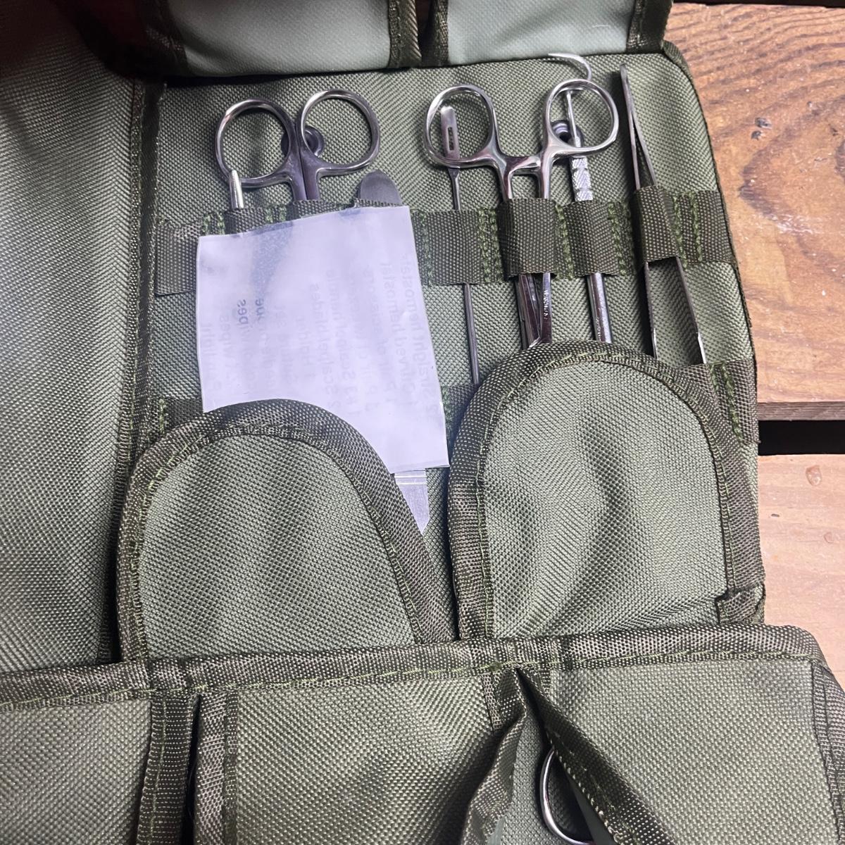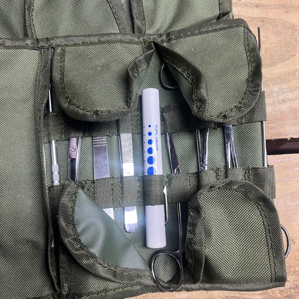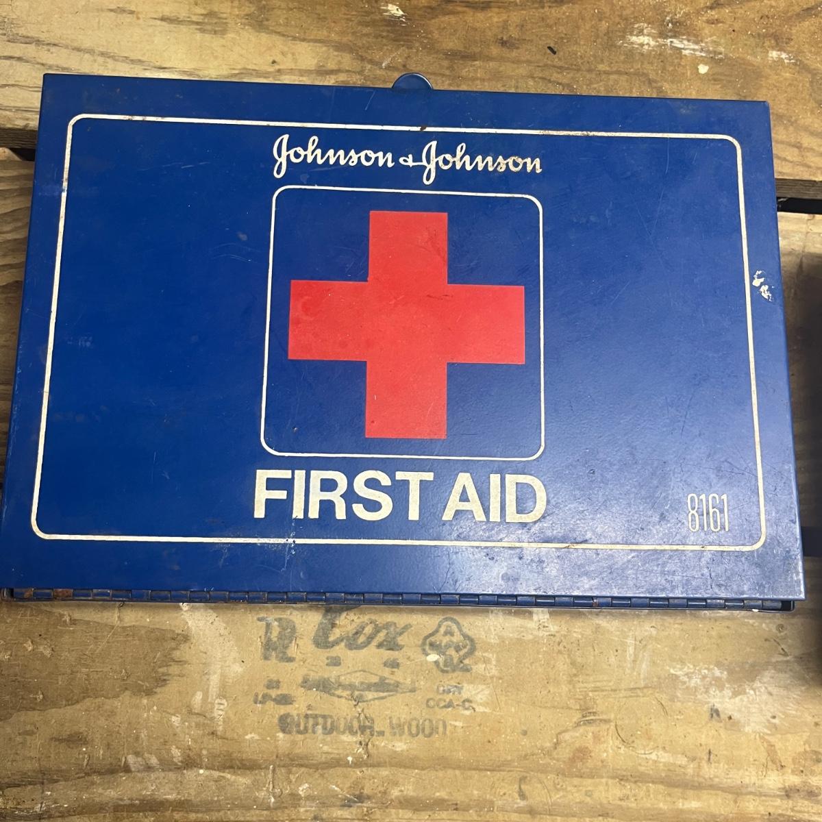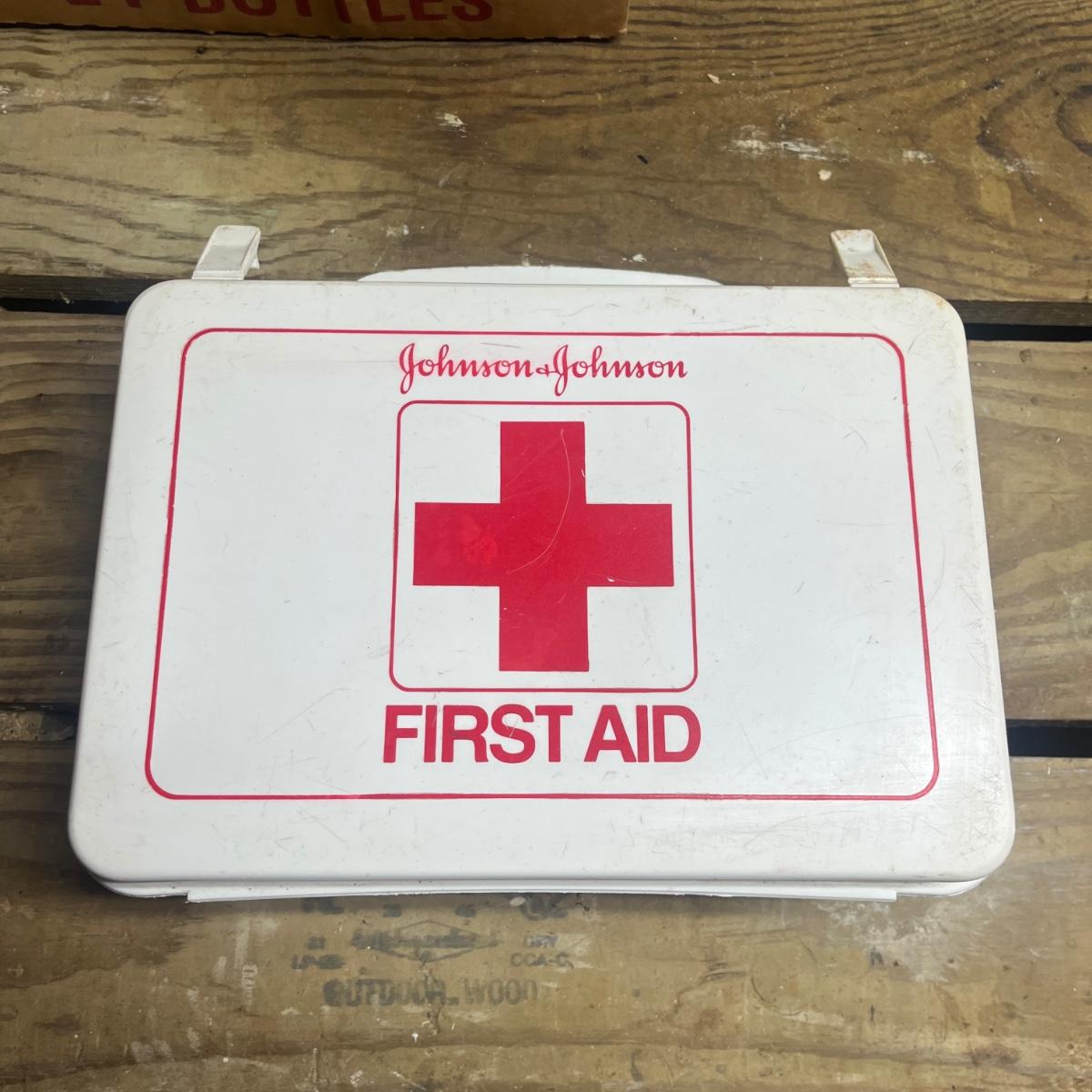 Lot contains a large supply of first aid supplies including tourniquets, bandages, books, snake repellent, emergency blankets, whistle, splints, gauze, laundry bar and more.