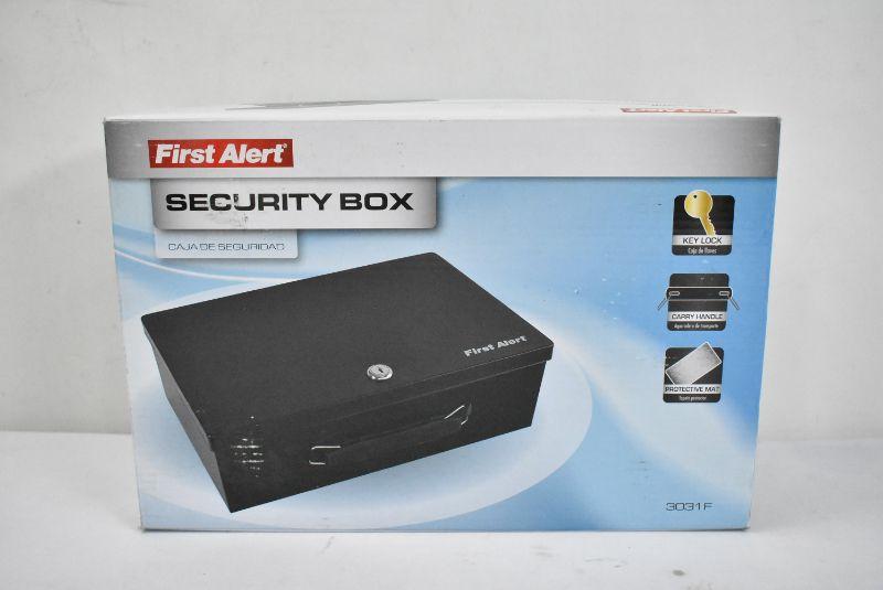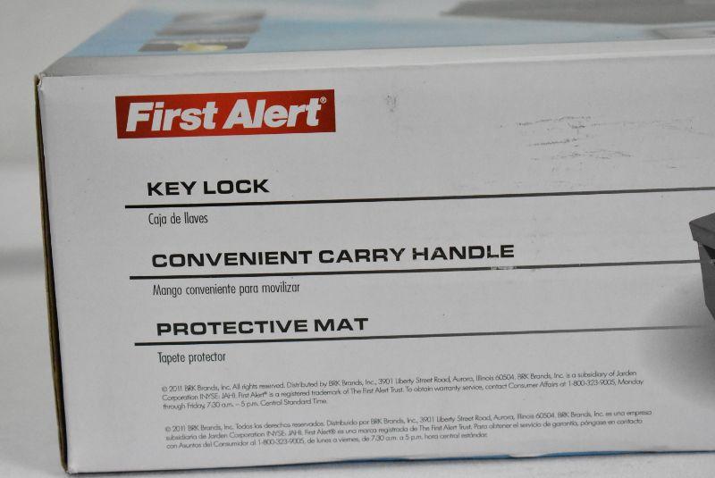 First Alert Security Box with Key, Carry Handle, & Protective Mat - New